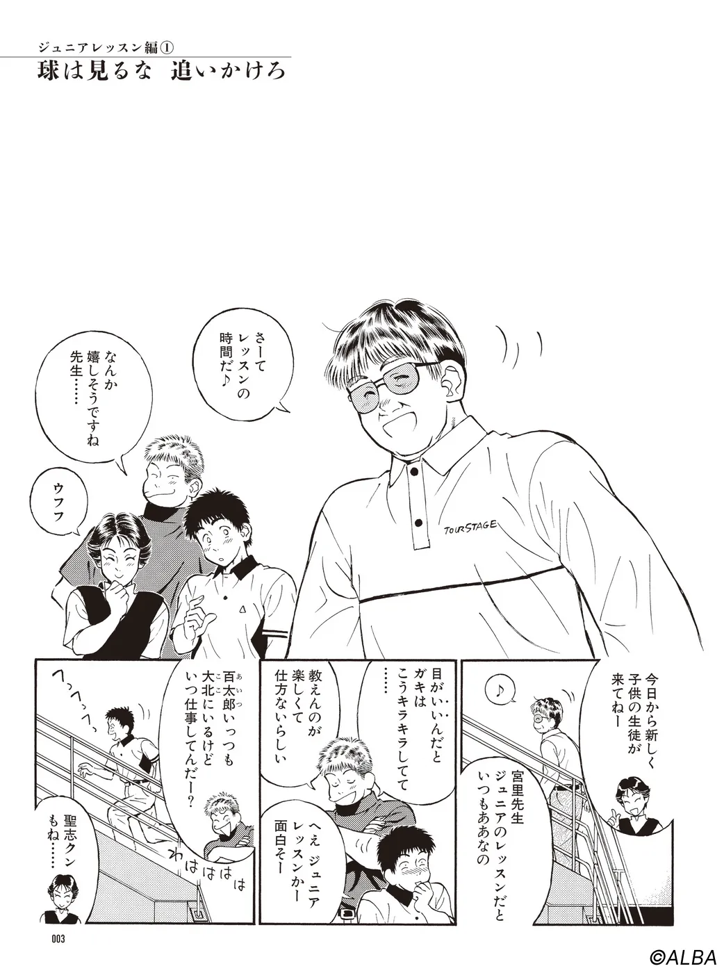 【ジュニアレッスン編|シリーズ概要】父親に連れられ、レッスンを受けにきた小学2年生の五十嵐拳(ケン)。熱心な父親に委縮するケンを前に「子供から“振る楽しみ”を奪わない!」と諭す宮里優。寄り添った指導で積極的な姿勢を見せ始めるケン、親の心構えを学んでいく父…“宮里マジック”で親子が成長をしていく。(指導:宮里優/脚本:かわさき健/作画:本島幸久)