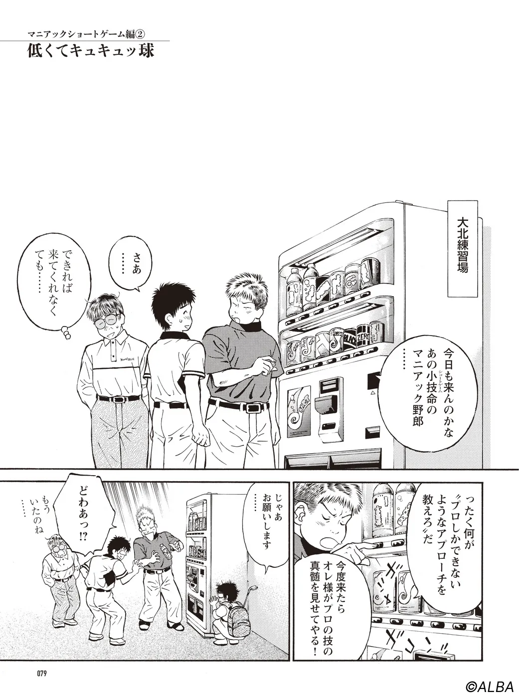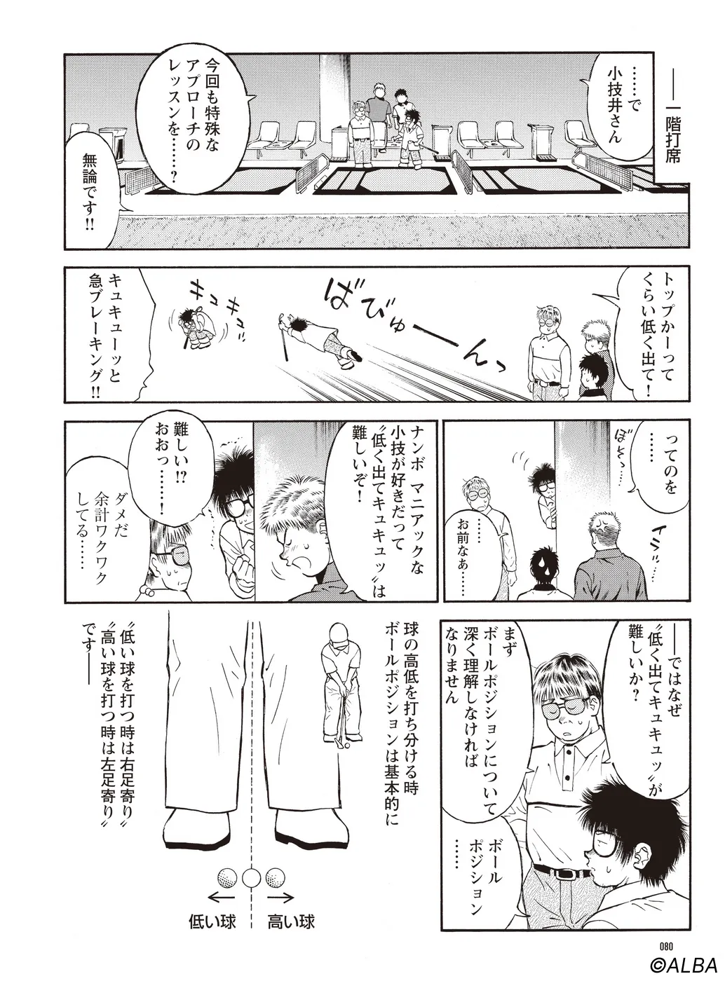 【マニアックショートゲーム編|シリーズ概要】今回の生徒は、ショートゲーム命のマニアック野郎・小技井 乃智(こわざい のち)。神出鬼没、頭でっかちで偏屈…厄介な門下生に振り回される宮里優、聖志、百太郎の面々だが、好奇心をもって指導を受け止める小技井に、宮里流のイマジネーションを伝授する。(指導:宮里優/脚本:かわさき健/作画:本島幸久)