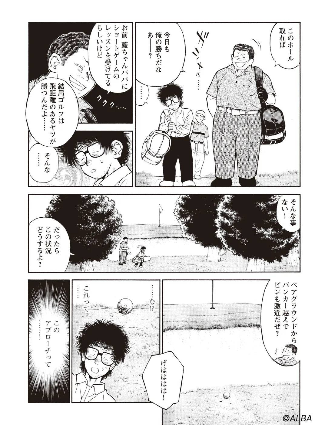 【マニアックショートゲーム編|シリーズ概要】今回の生徒は、ショートゲーム命のマニアック野郎・小技井 乃智(こわざい のち)。神出鬼没、頭でっかちで偏屈…厄介な門下生に振り回される宮里優、聖志、百太郎の面々だが、好奇心をもって指導を受け止める小技井に、宮里流のイマジネーションを伝授する。(指導:宮里優/脚本:かわさき健/作画:本島幸久)