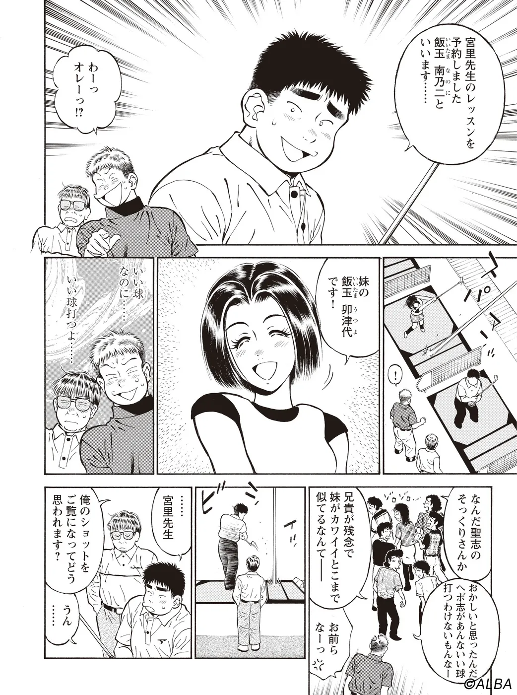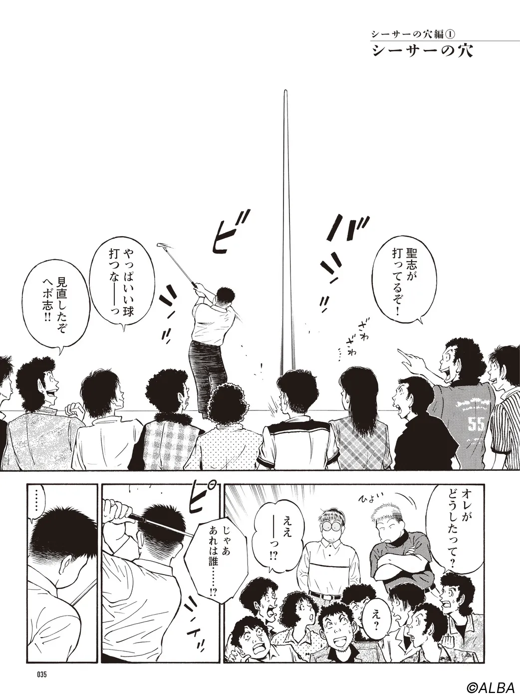 【シーサーの穴編|シリーズ概要】宮里道場を訪れた兄妹、飯玉南乃二(いいたま なのに)と飯玉卯津代(いいたま うつよ)。「スイングはいいのに…」と悩む兄に対し、“練習場シングル”から脱却させ、宮里流のゴルフ力を伝授するべく、ゴルフテーマパーク“シーサーの穴”へと導く。(指導:宮里優/脚本:かわさき健/作画:本島幸久)