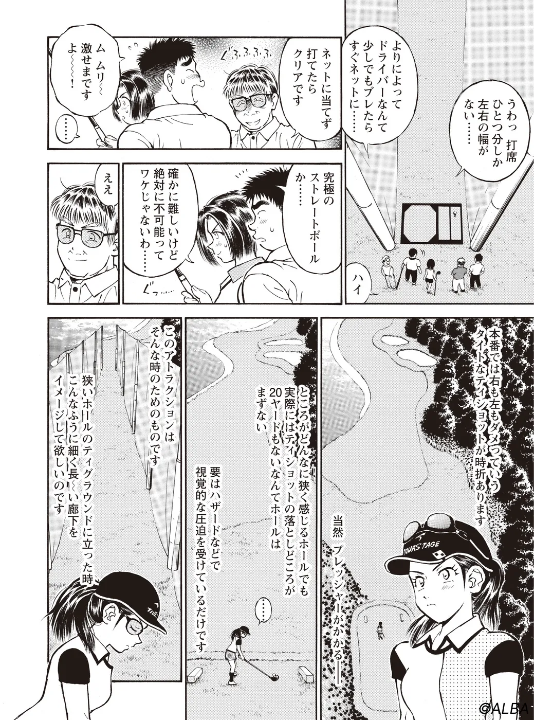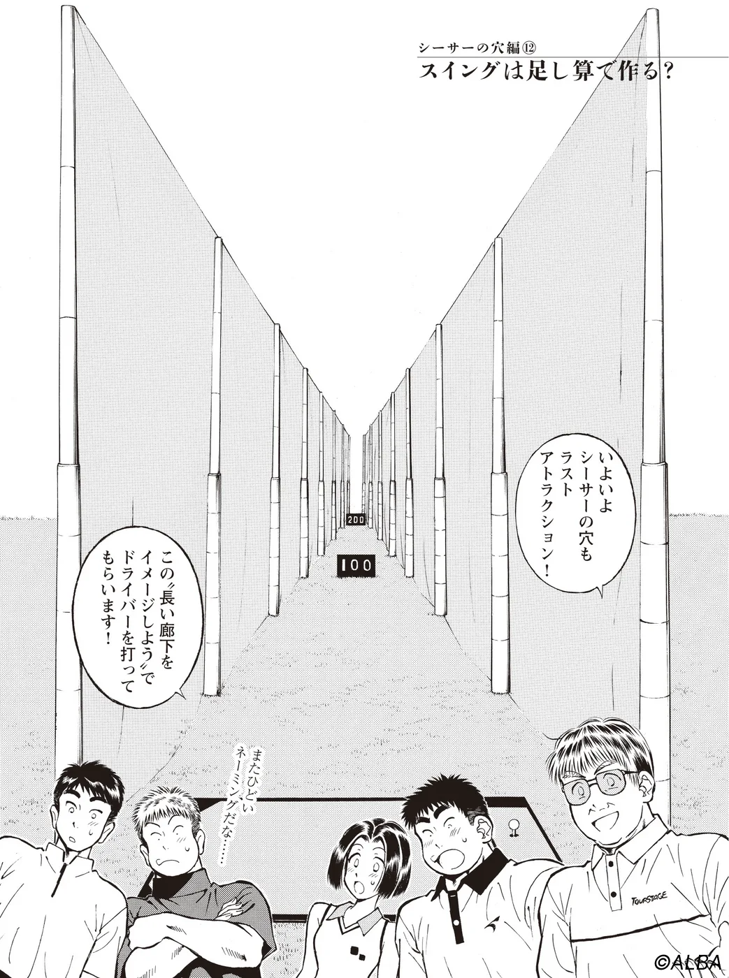 【シーサーの穴編|シリーズ概要】宮里道場を訪れた兄妹、飯玉南乃二(いいたま なのに)と飯玉卯津代(いいたま うつよ)。「スイングはいいのに…」と悩む兄に対し、“練習場シングル”から脱却させ、宮里流のゴルフ力を伝授するべく、ゴルフテーマパーク“シーサーの穴”へと導く。(指導:宮里優/脚本:かわさき健/作画:本島幸久)