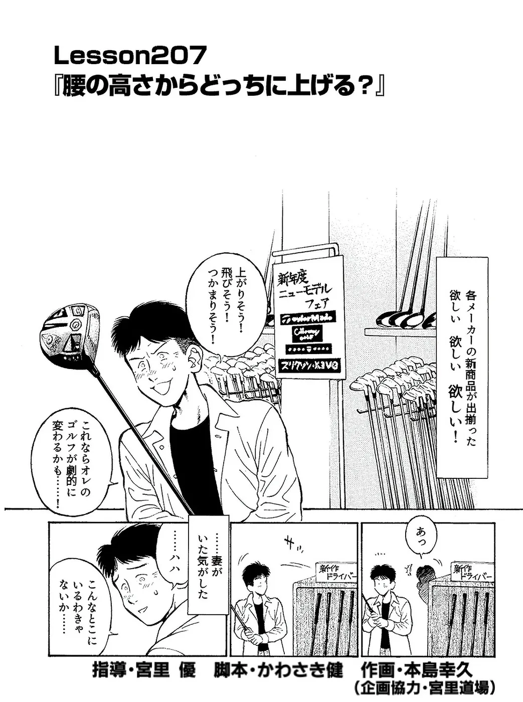 【夫婦でゴルフ編|シリーズ概要】結婚してから10数年、ふとしたタイミングで妻が「ゴルフをしたい」と言い出した。経験者の夫が抱いた夫婦で楽しめたら、という淡い期待は露と消え、クラブを握れば喧嘩ばかり。するとなんと、夫に愛想を尽かした妻がこっそりと宮里道場に通い始めた!(指導:宮里優/脚本:かわさき健/作画:本島幸久)※毎週月・水・金更新予定