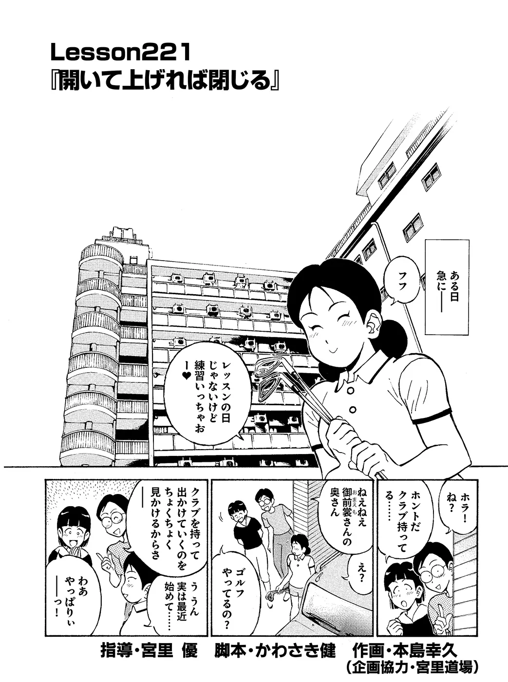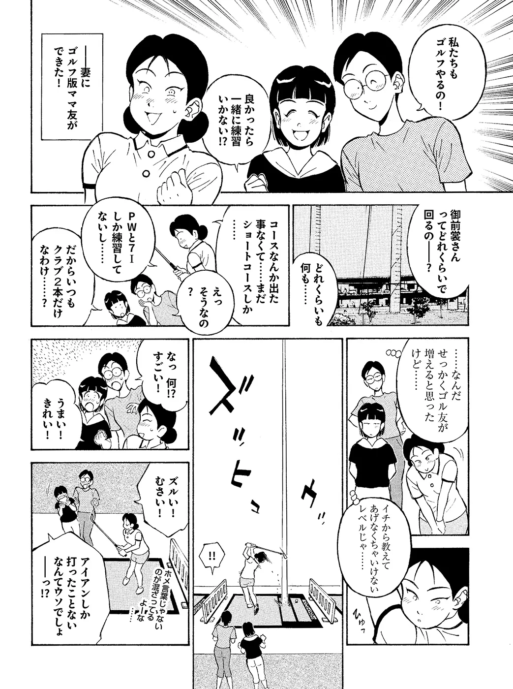 【夫婦でゴルフ編|シリーズ概要】結婚してから10数年、ふとしたタイミングで妻が「ゴルフをしたい」と言い出した。経験者の夫が抱いた夫婦で楽しめたら、という淡い期待は露と消え、クラブを握れば喧嘩ばかり。するとなんと、夫に愛想を尽かした妻がこっそりと宮里道場に通い始めた!(指導:宮里優/脚本:かわさき健/作画:本島幸久)※毎週月・水・金更新予定