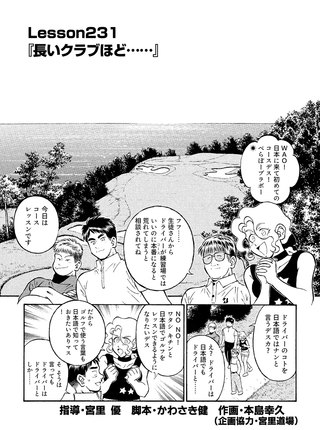 【ゴルフの“教え方”編|シリーズ概要】突如大北練習場に現れた金髪美女ジーン。英語と日本語でまくしたてる彼女が優先生にレクチャー願うのはゴルフの“教え方”。プレーが上手いのと、教え上手とは全くの別物。一筋縄ではいかないパワフルガールに宮里道場はいったいどうなる!?(指導:宮里優/脚本:かわさき健/作画:本島幸久)※毎週月・水・金更新予定