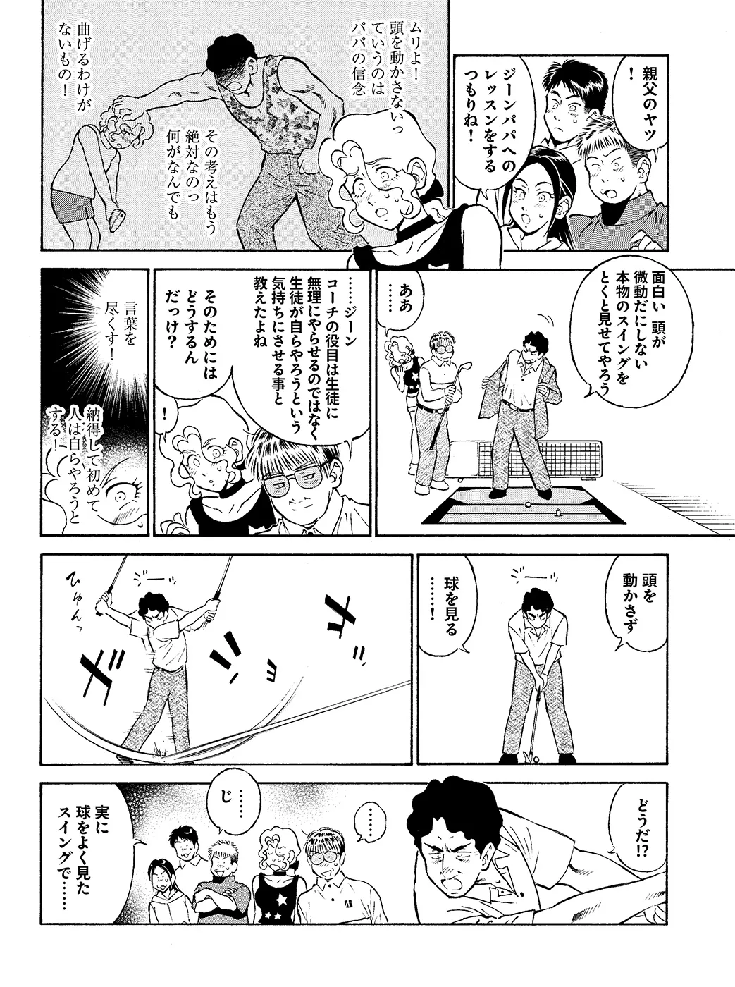【ゴルフの“教え方”編|シリーズ概要】突如大北練習場に現れた金髪美女ジーン。英語と日本語でまくしたてる彼女が優先生にレクチャー願うのはゴルフの“教え方”。プレーが上手いのと、教え上手とは全くの別物。一筋縄ではいかないパワフルガールに宮里道場はいったいどうなる!?(指導:宮里優/脚本:かわさき健/作画:本島幸久)※毎週月・水・金更新予定