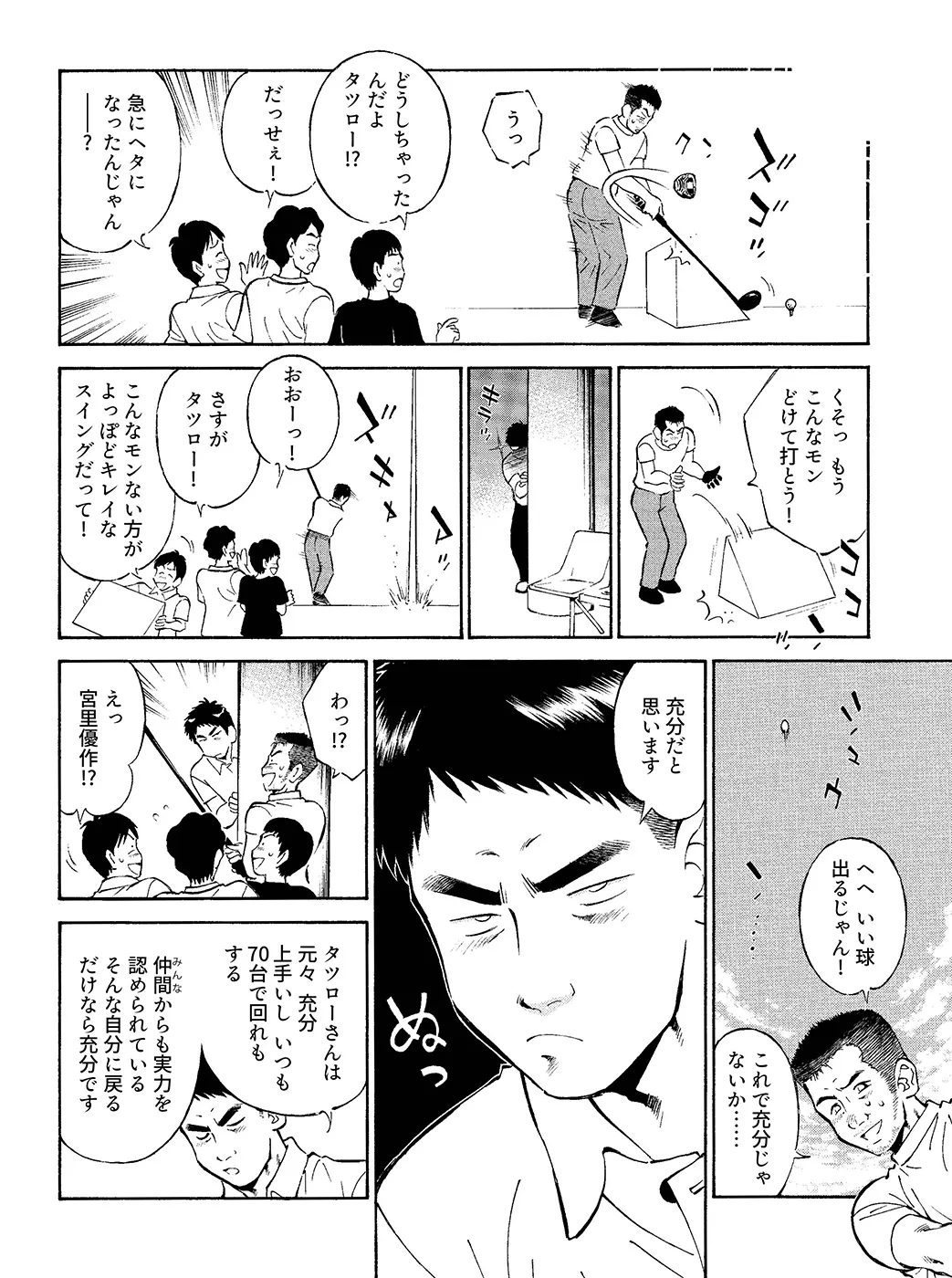 【めんそーれ競技ゴルフ 編|シリーズ概要】ゴルフ歴は30年。独学で平均70台まで上達した。子供の独り立ちを機に、意を決してゴルフ場のメンバーに。ハンデも取得し、いざ研修会へ。ーーコテンパンにやられた。次の研修会が怖い。このままじゃ、ダメだ!(指導:宮里優/脚本:かわさき健/作画:本島幸久)※毎週月・水・金更新予定