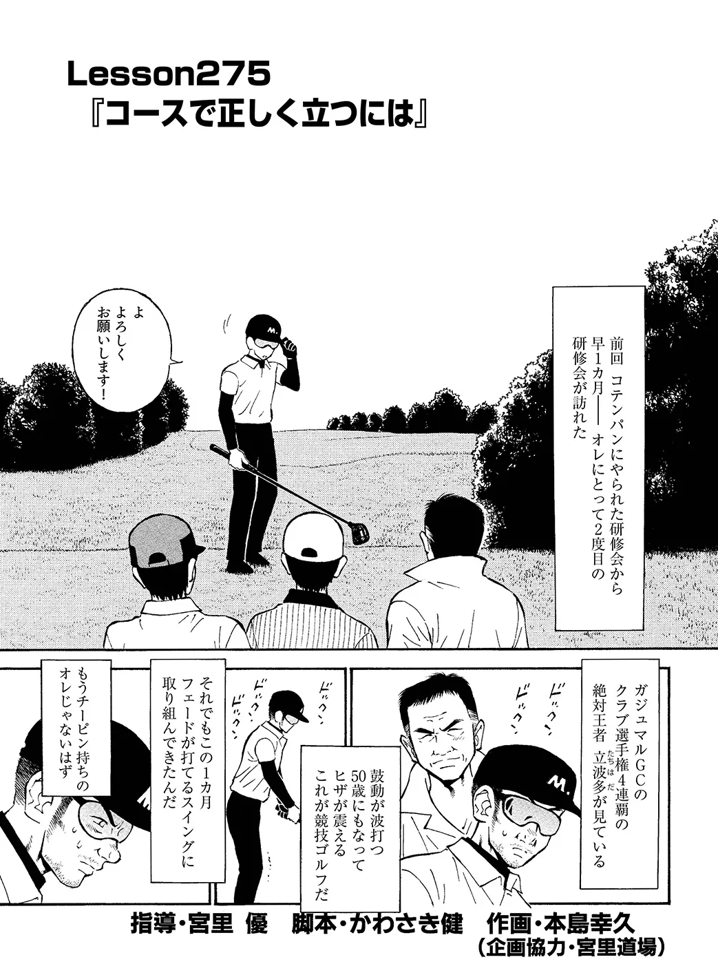 【めんそーれ競技ゴルフ 編|シリーズ概要】ゴルフ歴は30年。独学で平均70台まで上達した。子供の独り立ちを機に、意を決してゴルフ場のメンバーに。ハンデも取得し、いざ研修会へ。ーーコテンパンにやられた。次の研修会が怖い。このままじゃ、ダメだ!(指導:宮里優/脚本:かわさき健/作画:本島幸久)※毎週月・水・金更新予定
