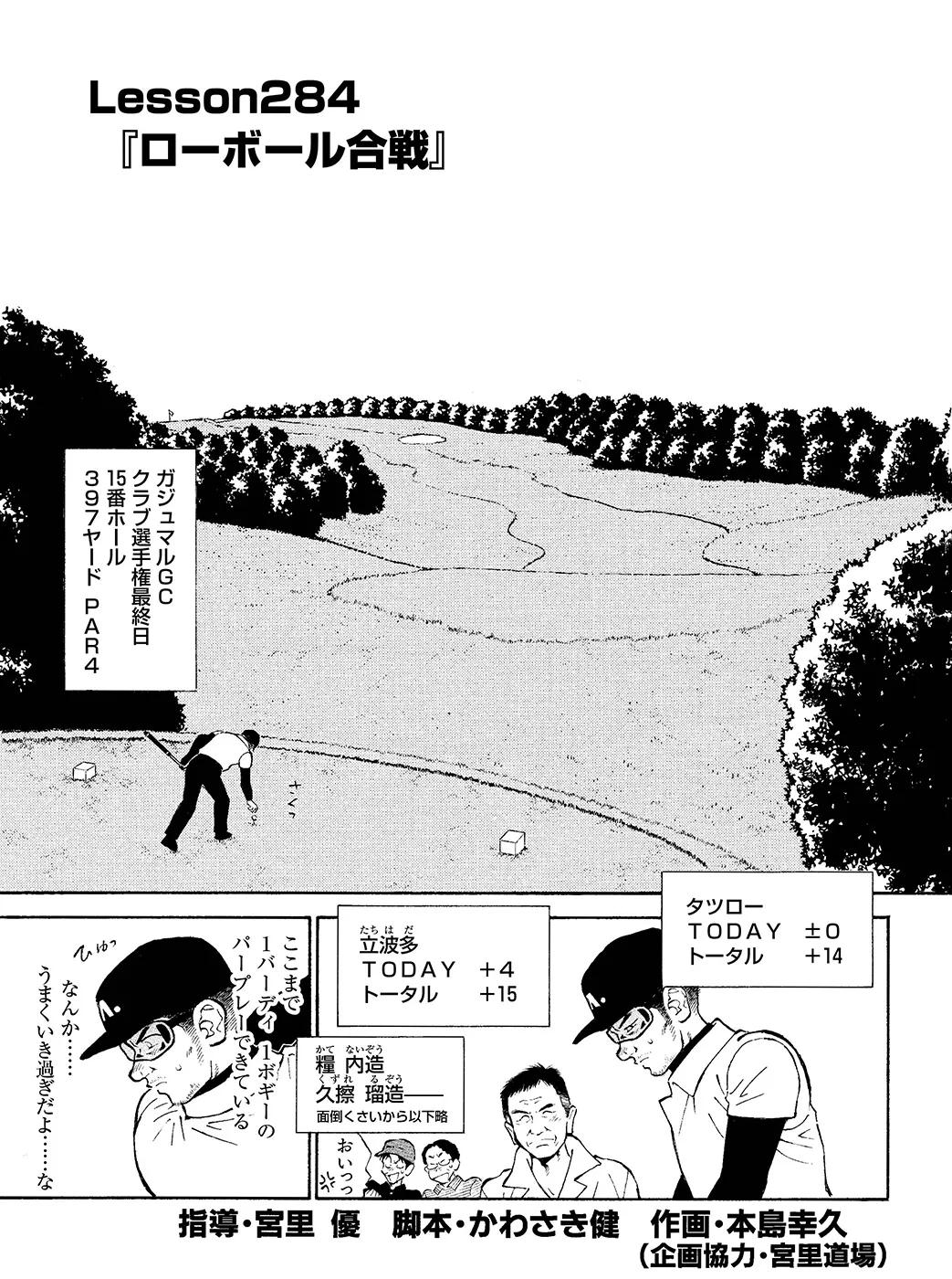 【めんそーれ競技ゴルフ 編|シリーズ概要】ゴルフ歴は30年。独学で平均70台まで上達した。子供の独り立ちを機に、意を決してゴルフ場のメンバーに。ハンデも取得し、いざ研修会へ。ーーコテンパンにやられた。次の研修会が怖い。このままじゃ、ダメだ!(指導:宮里優/脚本:かわさき健/作画:本島幸久)※毎週月・水・金更新予定