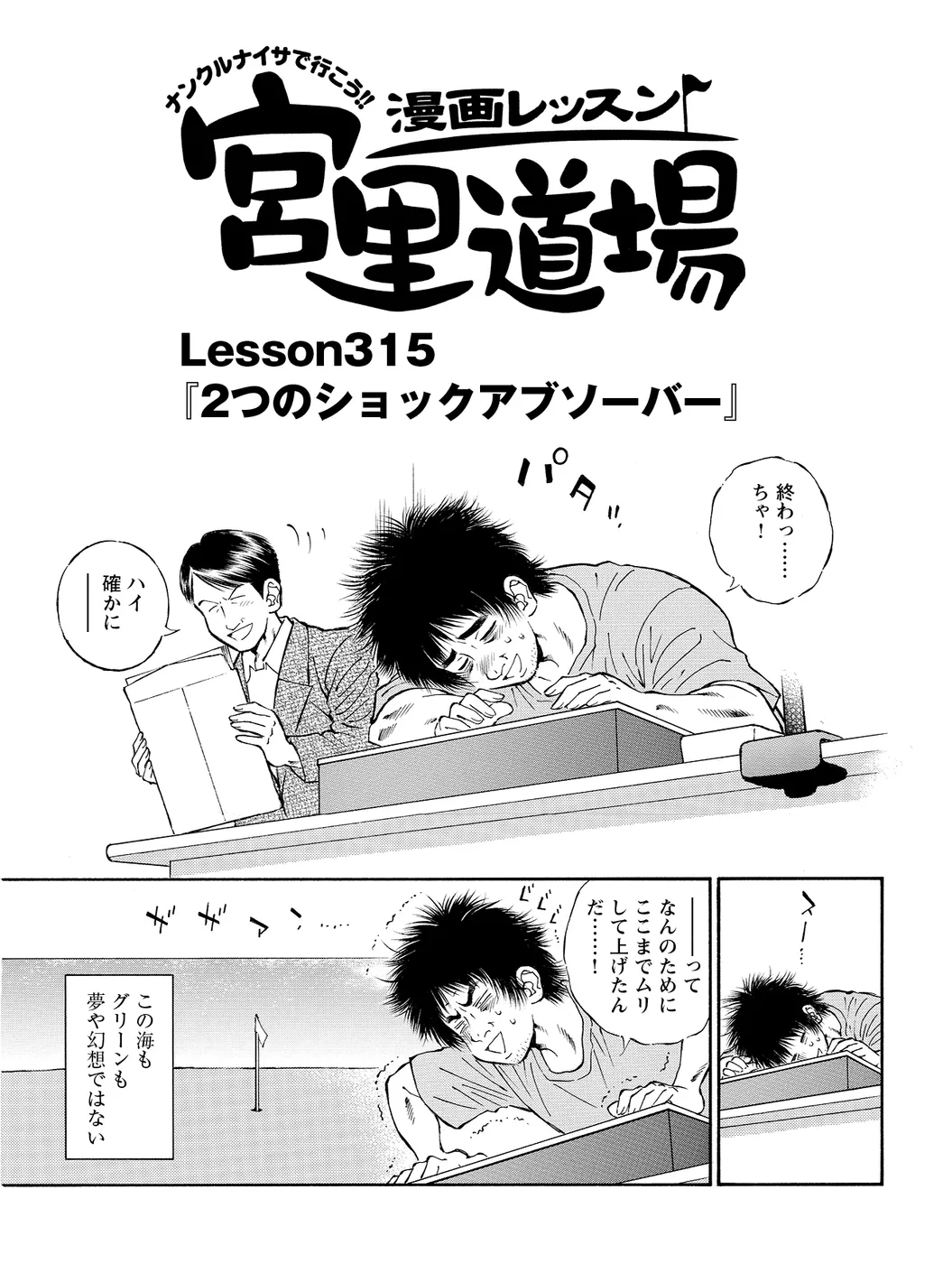 【体が硬くてクラブが振れない…編|シリーズ概要】仕事はひたすら前かがみの同じ姿勢。1日18時間座りっぱなしなんてこともザラ。気づいたら信じられないほど体が硬くなっていた! 学生時代のゴルフ経験がむしろ邪魔をする有様で……。こんな人は、どうすれば!?(指導:宮里優/脚本:かわさき健/作画:本島幸久)
