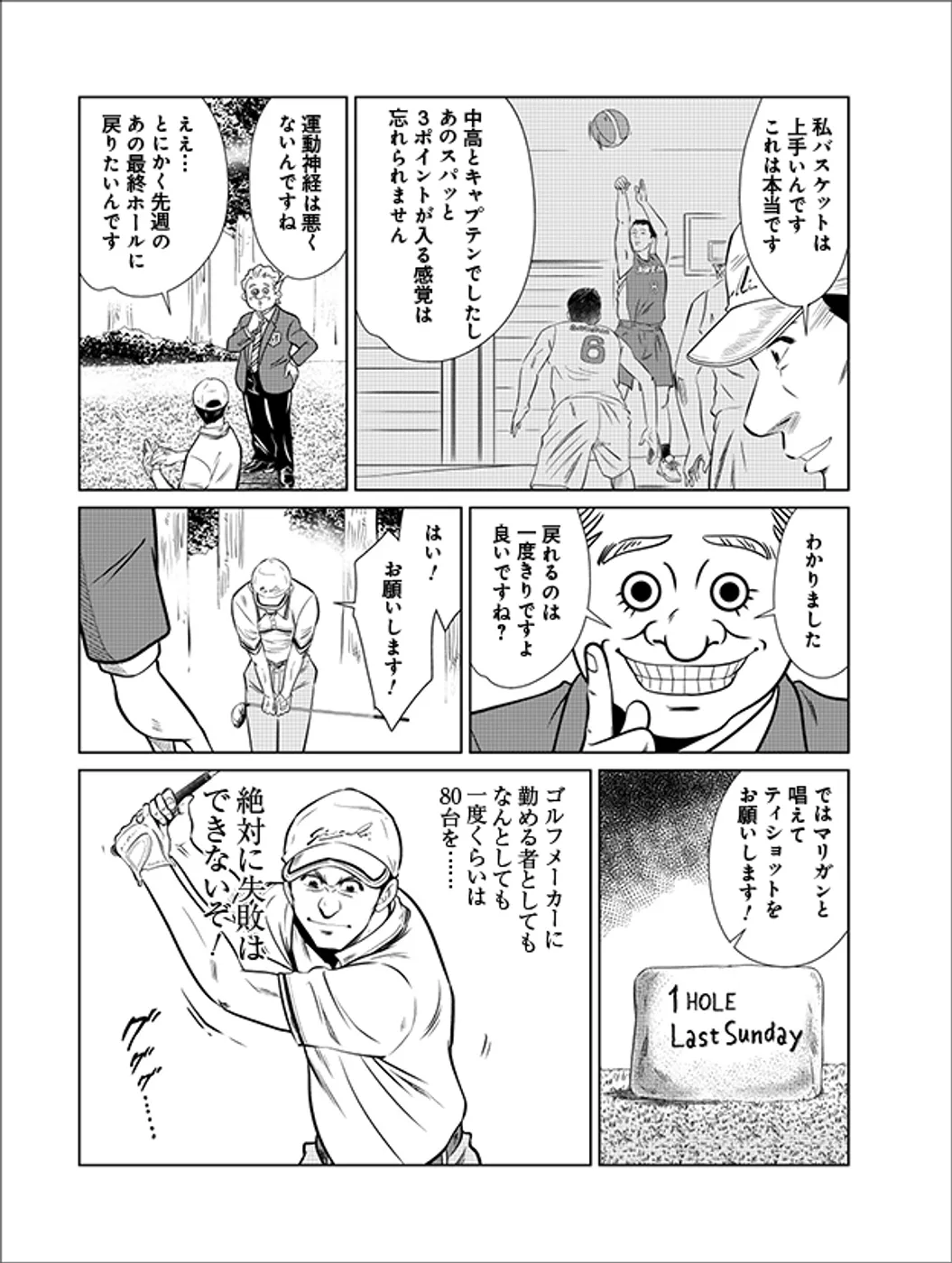 ゴルファーなら誰しも一度は経験する、ラウンド中の痛恨の一打…そんな思いを持った方は『マリガンズゴルフクラブ』へお越しください。当クラブでティショットをすれば、あなたは痛恨の一打の地点に舞い戻り、人生をやり直すことができるのです……