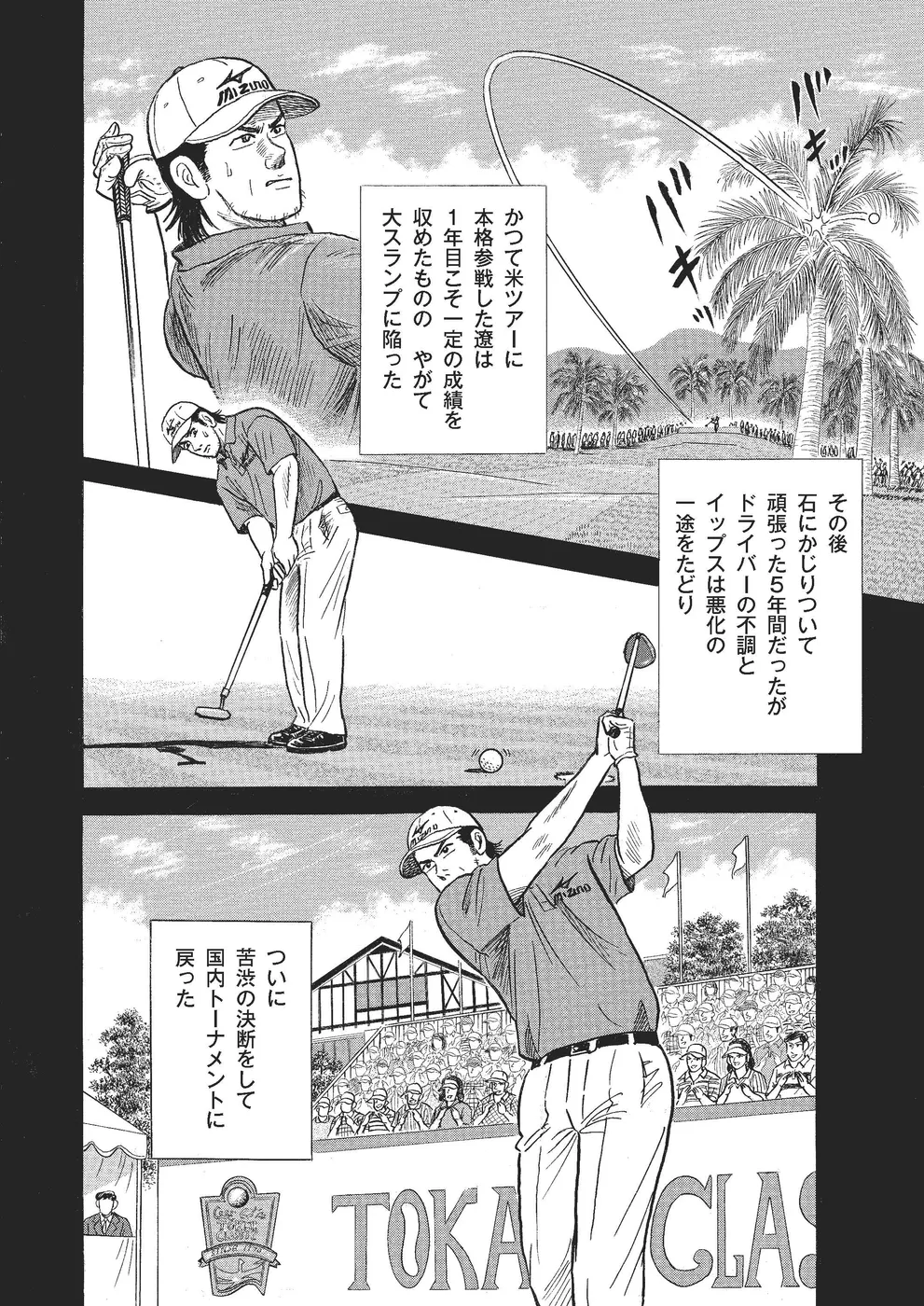 マスターズで初日から首位を独走した坂本遼だが、3日目の夜に激しい頭痛に襲われ、くも膜下出血でこの世を去った。その息子・坂本翔が18歳になり、父親の無念を晴らすべく、日本ツアーの出場権を懸けたファイナルクォリファイングトーナメント(QT)に挑戦!【毎週月・木曜日更新予定】