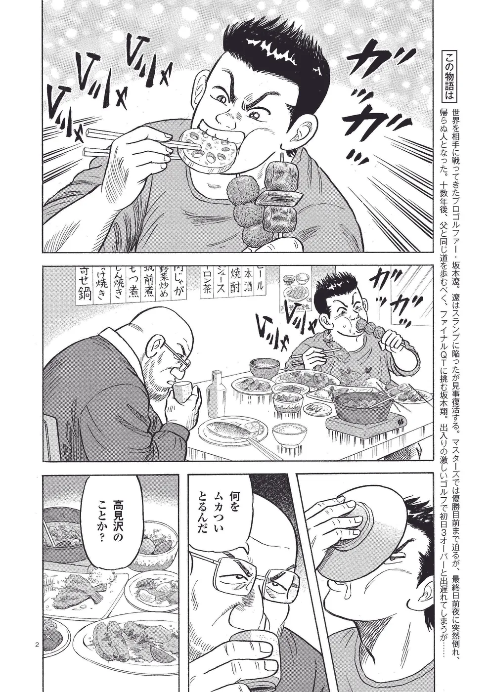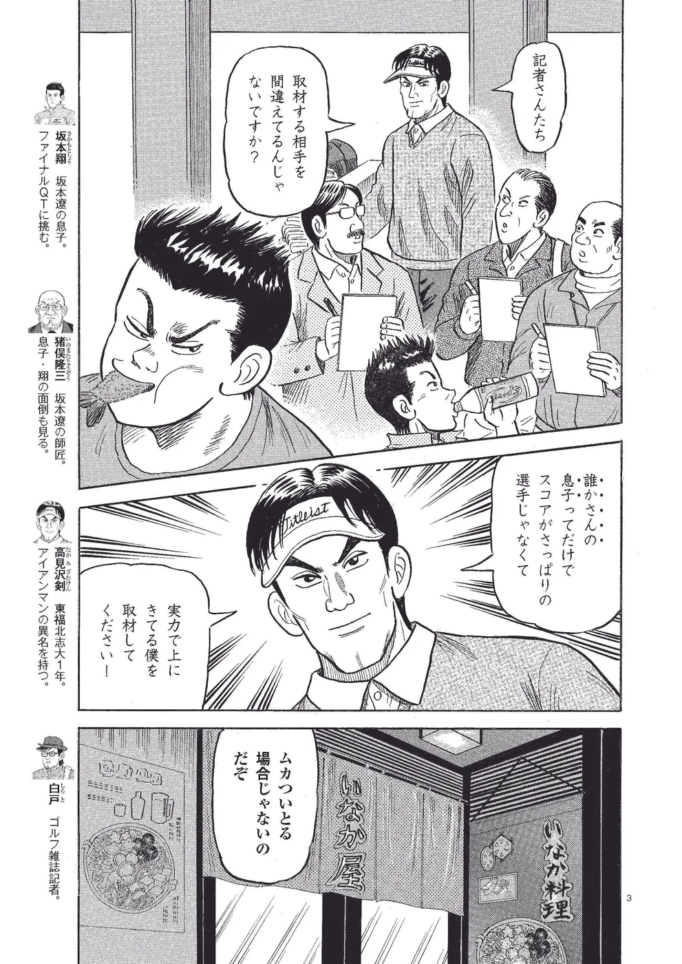 マスターズで初日から首位を独走した坂本遼だが、3日目の夜に激しい頭痛に襲われ、くも膜下出血でこの世を去った。その息子・坂本翔が18歳になり、父親の無念を晴らすべく、日本ツアーの出場権を懸けたファイナルクォリファイングトーナメント(QT)に挑戦!【毎週月・木曜日更新予定】