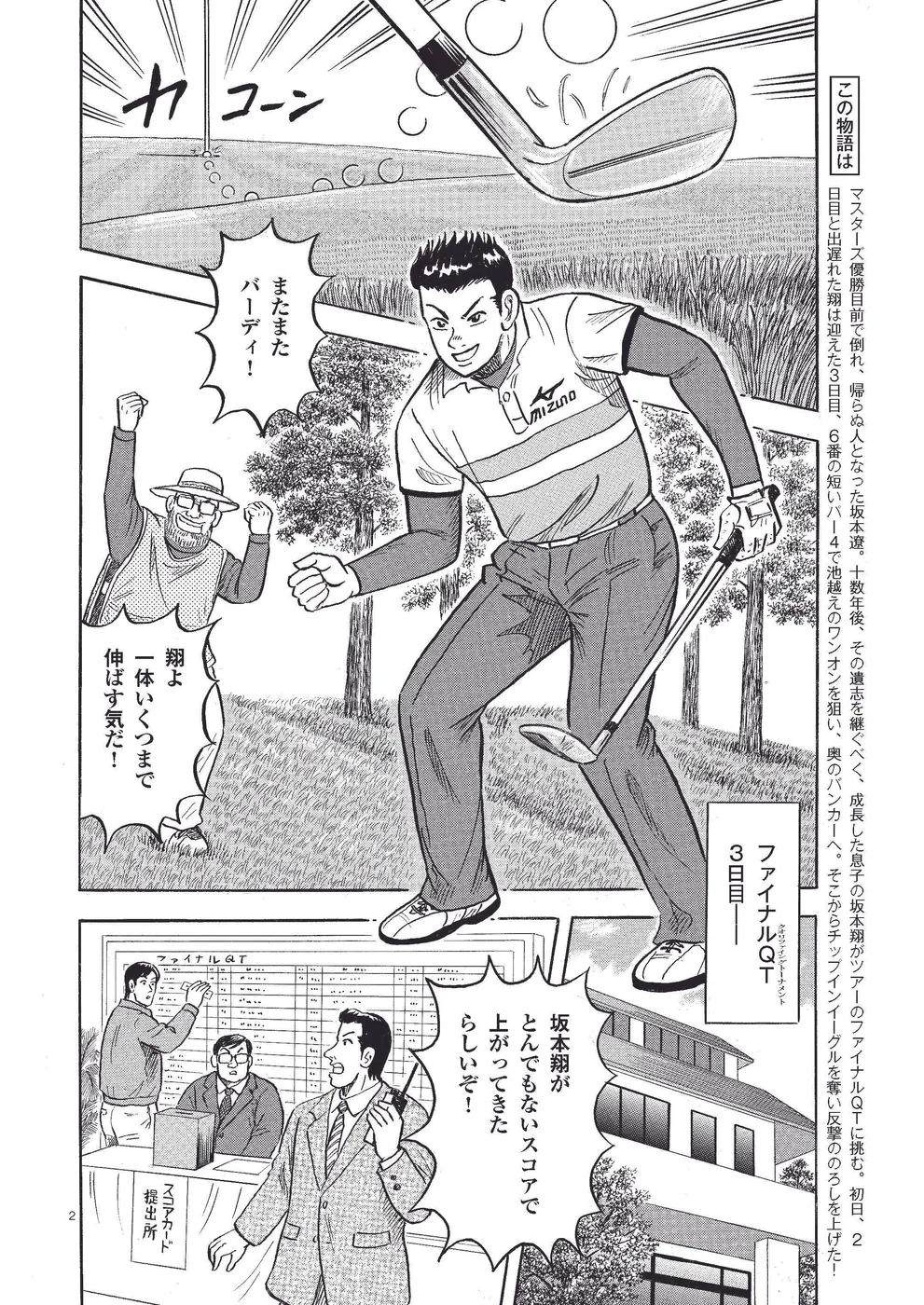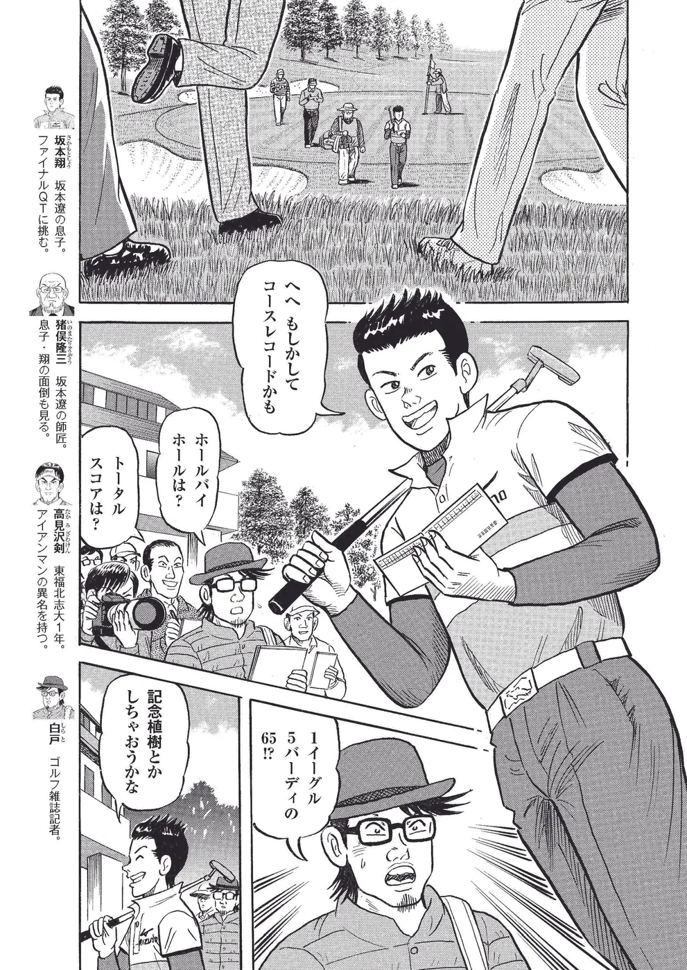 マスターズで初日から首位を独走した坂本遼だが、3日目の夜に激しい頭痛に襲われ、くも膜下出血でこの世を去った。その息子・坂本翔が18歳になり、父親の無念を晴らすべく、日本ツアーの出場権を懸けたファイナルクォリファイングトーナメント(QT)に挑戦!【毎週月・木曜日更新予定】