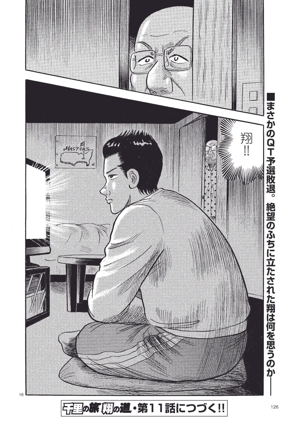 マスターズで初日から首位を独走した坂本遼だが、3日目の夜に激しい頭痛に襲われ、くも膜下出血でこの世を去った。その息子・坂本翔が18歳になり、父親の無念を晴らすべく、日本ツアーの出場権を懸けたファイナルクォリファイングトーナメント(QT)に挑戦!【毎週月・木曜日更新予定】