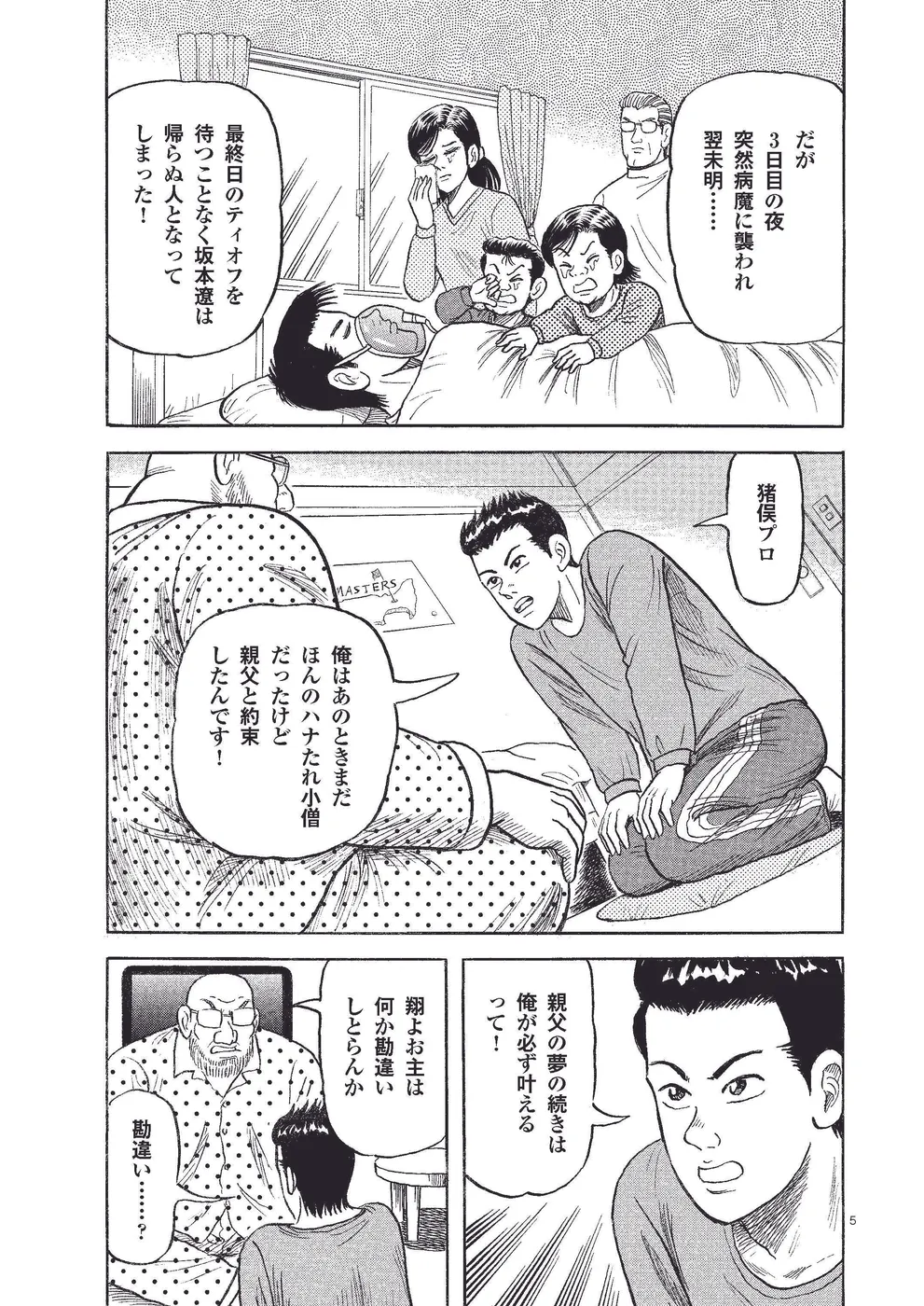 マスターズ優勝目前で倒れ、帰らぬ人となった坂本遼。十数年後、その遺志を継ぐべく成長した息子の坂本翔がツアーのファイナルQTに挑む。翔は3日目にコースレコードをたたき出すも、4日目の大たたきで最下位に沈み予選落ち。さらに言動を猪俣にとがめられ、翔はゴルファー失格の烙印を押されてしまう!【毎週月・木曜日更新予定】