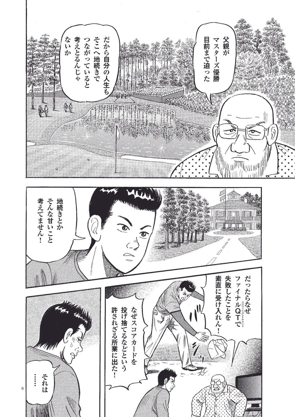 マスターズ優勝目前で倒れ、帰らぬ人となった坂本遼。十数年後、その遺志を継ぐべく成長した息子の坂本翔がツアーのファイナルQTに挑む。翔は3日目にコースレコードをたたき出すも、4日目の大たたきで最下位に沈み予選落ち。さらに言動を猪俣にとがめられ、翔はゴルファー失格の烙印を押されてしまう!【毎週月・木曜日更新予定】