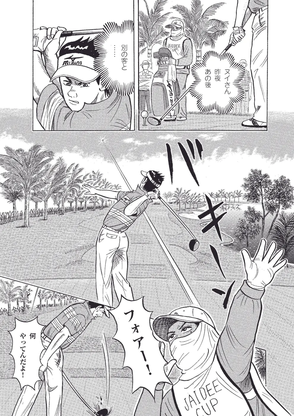 坂本遼の夢を継ぎ、息子の坂本翔がツアーのクォリファイングトーナメントに挑むが、あえなく失敗。翔はアジアに戦いの場を求めてタイへ。初日、順調にスコアを伸ばした翔だったが、魔の18番でトリプルボギーをたたき、イーブンパーでホールアウト。その夜、翔と田端は夜の歓楽街で意外な人物と出会う。