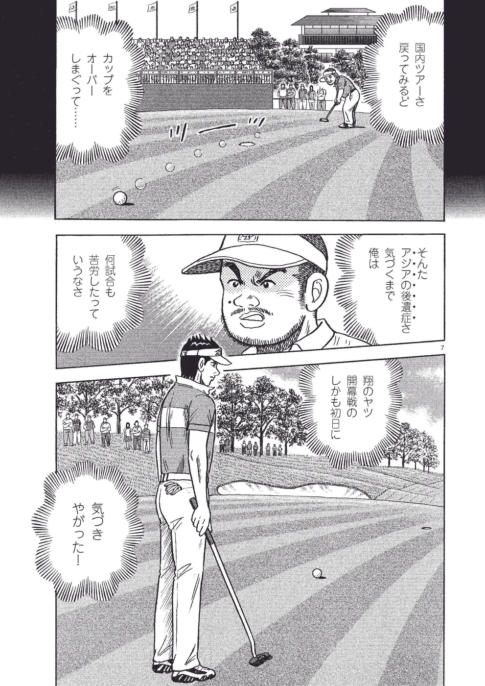 父の夢を継ぎ、マスターズ優勝を目標に掲げてプロゴルファーになった坂本翔。アジアのツアーを転戦して力をつけ、日本に帰国。主催者推薦で国内開幕戦「東関ホームエイトカップ」に出場する。予選ラウンド同組には、父・遼の元キャディ、田所稔がいた。パッティング不調の翔は、その原因に気づくのか!?