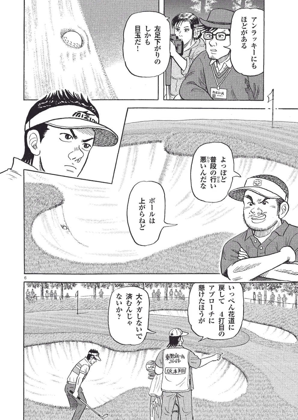 父の夢を継ぎ、マスターズ優勝を目標に掲げてプロゴルファーになった坂本翔。アジアのツアーを転戦して力をつけ、日本に帰国。主催者推薦で国内開幕戦「東関ホームエイトカップ」に出場する。予選ラウンド同組には、父・遼の元キャディ、田所稔がいた。