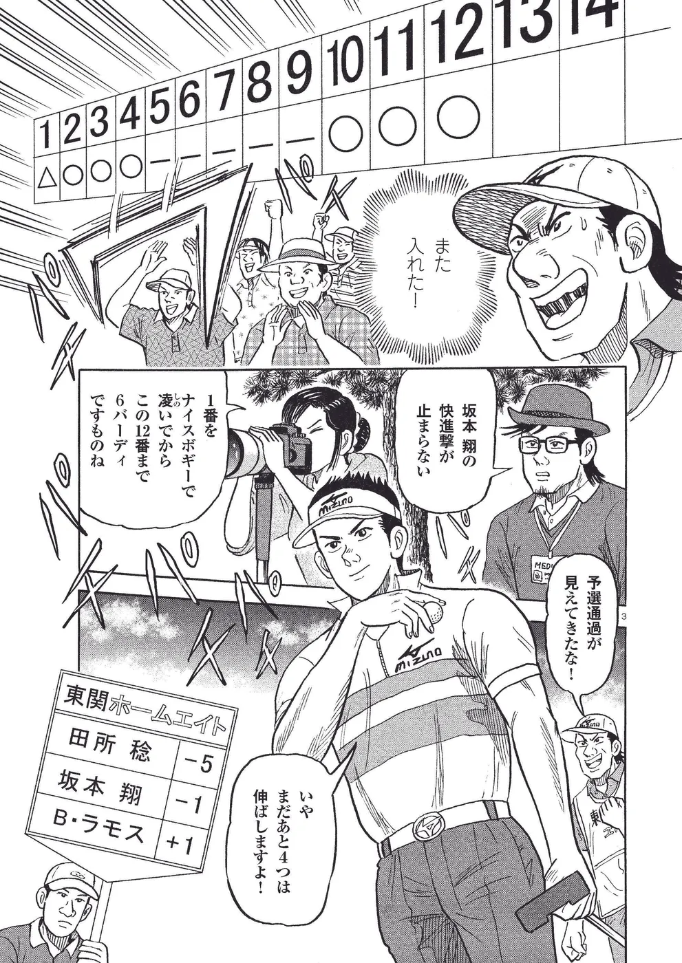 父の夢を継ぎ、マスターズ優勝を目標に掲げてプロゴルファーになった坂本翔。主催者推薦で国内開幕戦「東関ホームエイトカップ」に出場する。予選ラウンド同組には、父・遼の元キャディ、田所稔がいた。初日、パッティングが不調で出遅れた翔だが、2日目にパッティングを修正して予選通過なるか!?