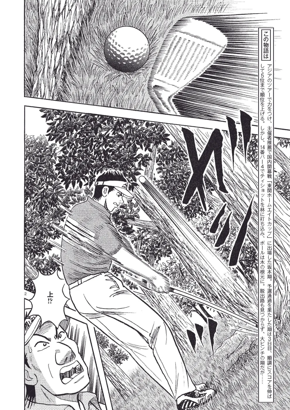 アジアのツアーで力をつけ、主催者推薦で国内開幕戦「東関ホームエイトカップ」に出場した坂本翔。予選通過を果たした翔は3日目、順調にスコアを伸ばして5位まで順位を上げる。しかし、14 番パー4でティショットを林に打ち込み、ボールは木の根元に。脱出路も見つからず、大ピンチの翔だが……
