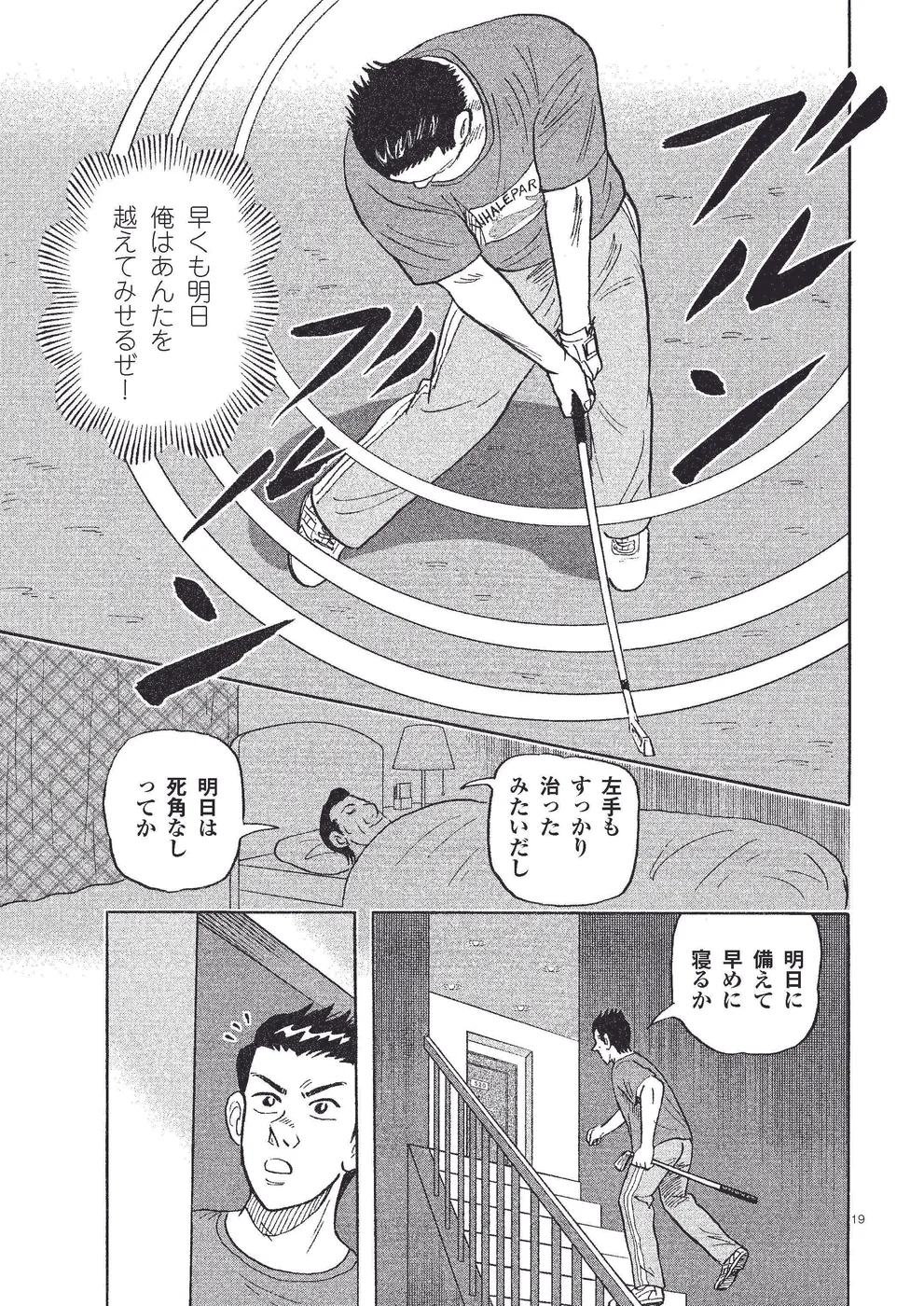 アジアのツアーで力をつけ、主催者推薦で国内開幕戦「東関ホームエイトカップ」に出場した坂本翔。3日目にスコアを伸ばした翔は3位まで順位を上アジアのツアーで力をつけ、主催者推薦で国内開幕戦「東関ホームエイトカップ」に出場した坂本翔。3日目に順位を上げた翔は、14番第2打、林からのショットで左手を負傷してしまう。痛めた左手は、18番で何とか復活。ティショット、豪打復活でフェアウエーをキープ。首位をうかがう位置にきたが……げる。しかし14番の2打目の林からのショットで左手を負傷。痛みをごまかしながら17番までやって来た翔だが、距離のあるバンカーショットが残った。