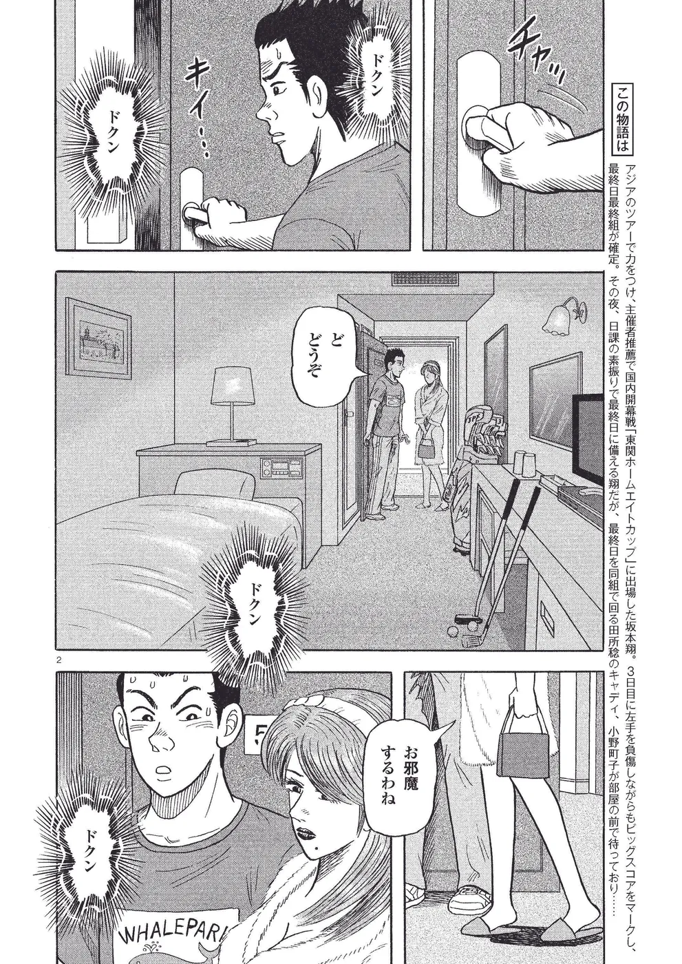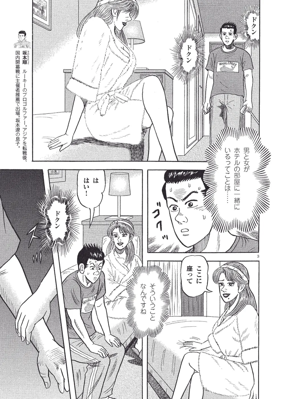 アジアのツアーで力をつけ、主催者推薦で国内開幕戦「東関ホームエイトカップ」に出場した坂本翔。3日目に左手を負傷しながらもビッグスコアをマークし、最終日最終組が確定。その夜、日課の素振りで最終日に備える翔だが、最終日を同組で回る田所稔のキャディ、小野町子が部屋の前で待っており……。