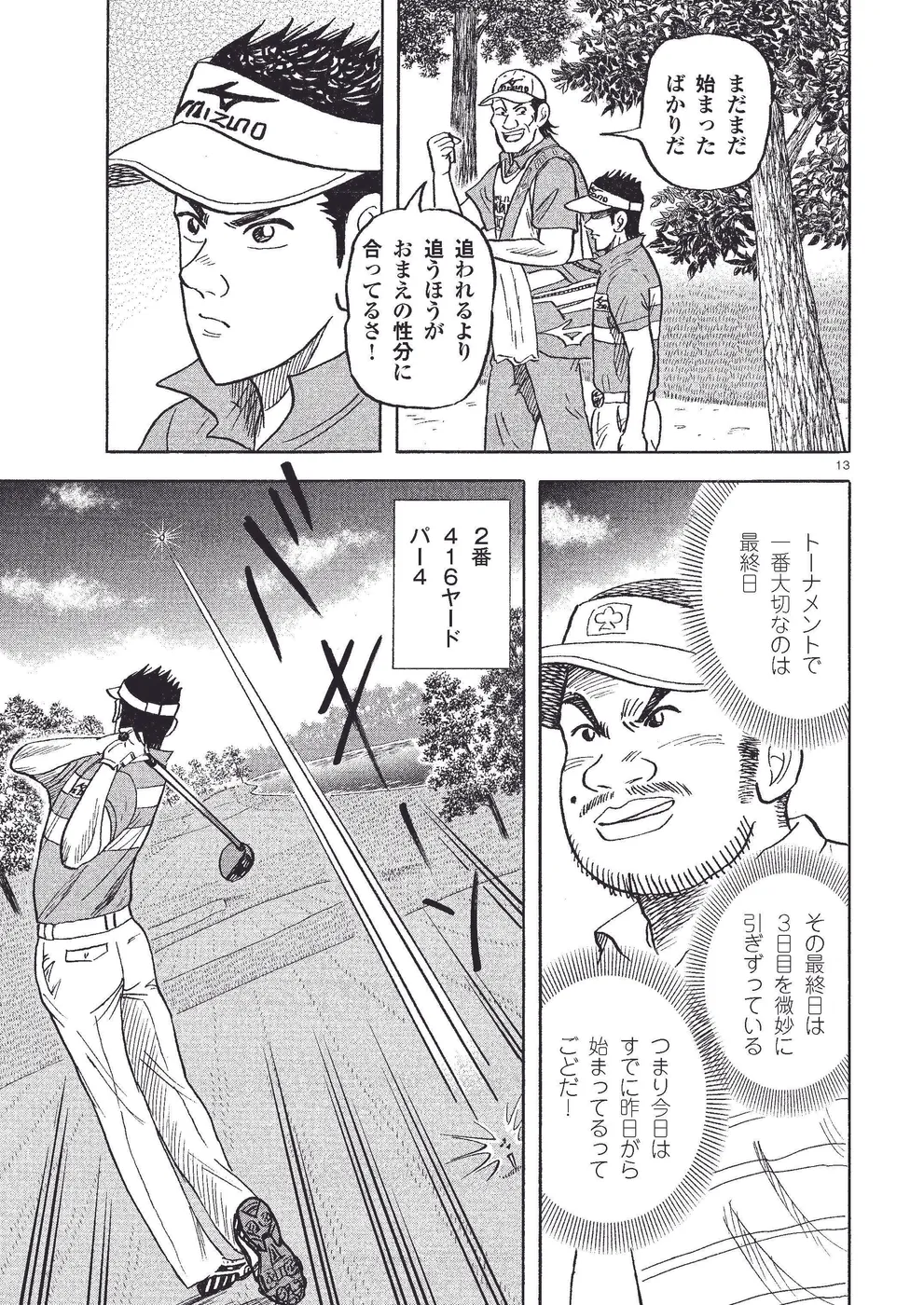 アジアのツアーで力をつけ、主催者推薦で国内開幕戦「東関ホームエイトカップ」に出場した坂本翔。3日目に左手を負傷しながらもビッグスコアをマークし、最終日最終組を回ることに。最終日の1番ホール、540ヤードのパー5。翔のセカンドは絶好のポジションからなぜかハーフトップしてしまうが……