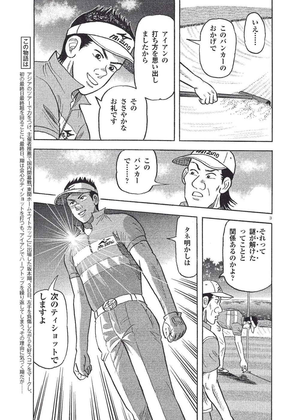 アジアのツアーで力をつけ、主催者推薦で国内開幕戦「東関ホームエイトカップ」に出場した坂本翔。3日目、左手を負傷しながらも好スコアをマークし、初の最終日最終組を回ることに。最終日、翔は会心のティショットを打つも、アイアンでハーフトップを繰り返してしまう。その理由に気づく翔だが……
