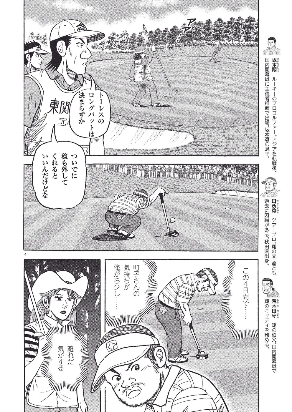アジアのツアーで力をつけ、主催者推薦で国内開幕戦「東関ホームエイトカップ」に出場した坂本翔。3日目、左手を負傷しながらも好スコアをマークし、初の最終日最終組を回ることに。最終日、翔は会心のティショットを打つも、アイアンでハーフトップを繰り返してしまう。その理由に気づく翔だが……