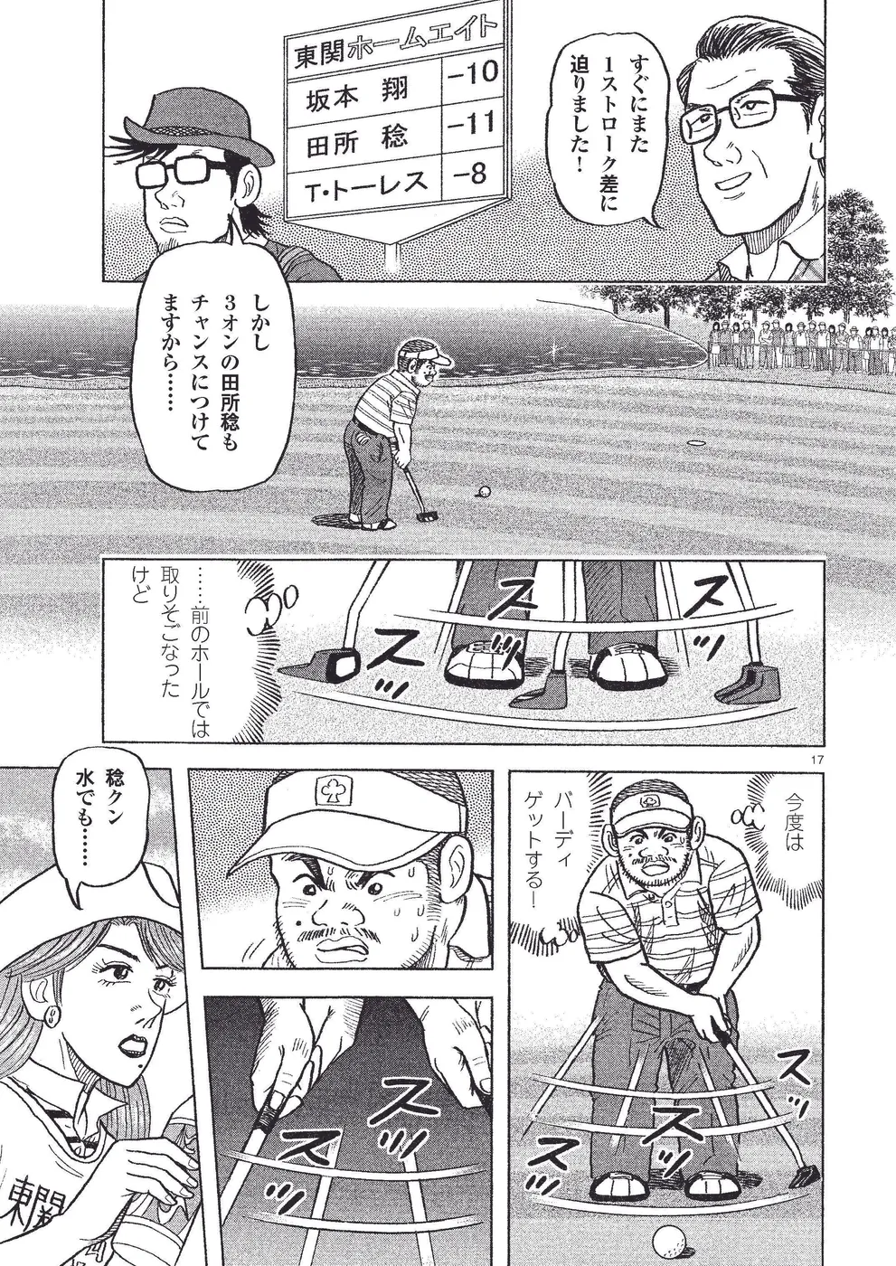 アジアのツアーで力をつけ、主催者推薦で国内開幕戦「東関ホームエイトカップ」に出場した坂本翔。スコアを伸ばして最終日最終組を回ることに。最終日、優勝争いの中の11番ホール、グリーンを外してピンチの翔は、ニアサイドで左足下がりのラフからのアプローチにロブショットを選択するが……