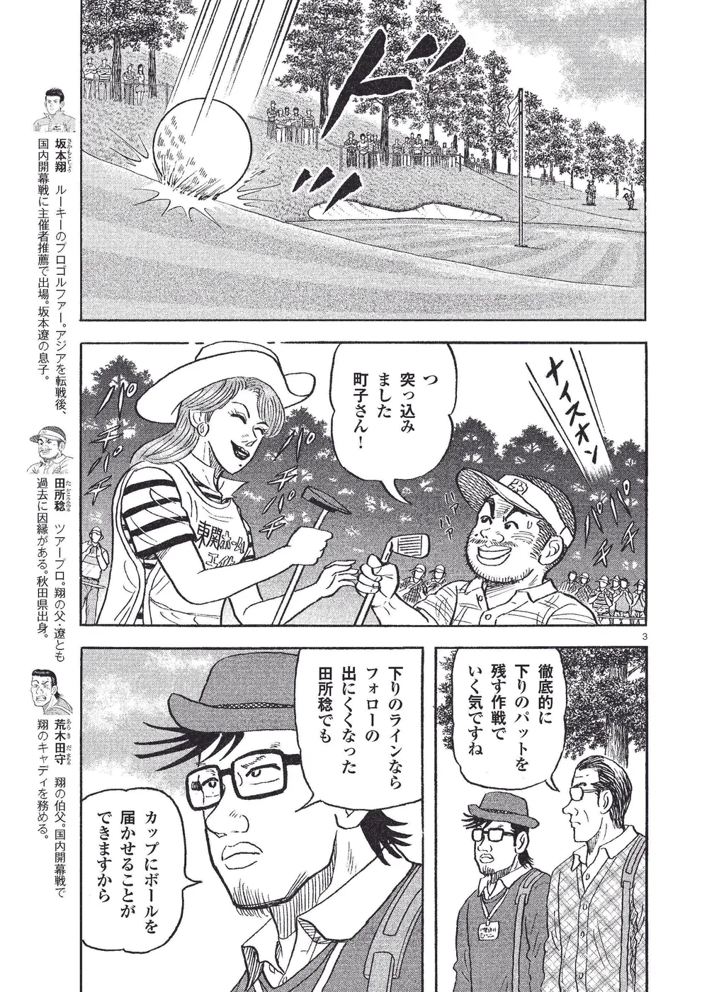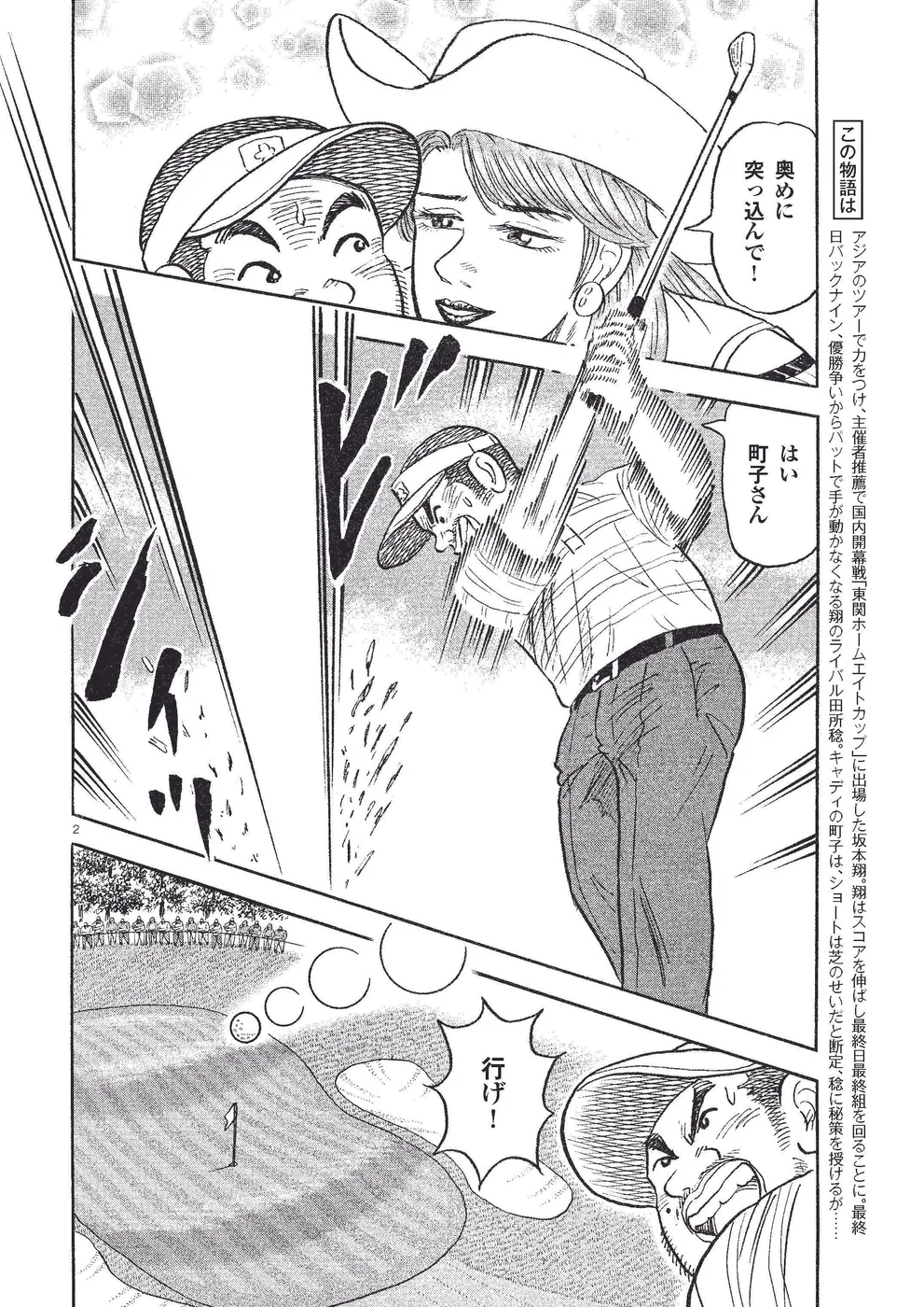 アジアのツアーで力をつけ、主催者推薦で国内開幕戦「東関ホームエイトカップ」に出場した坂本翔。翔はスコアを伸ばし最終日最終組を回ることに。最終日バックナイン、優勝争いからパットで手が動かなくなる翔のライバル田所稔。キャディの町子は、ショートは芝のせいだと断定、稔に秘策を授けるが……