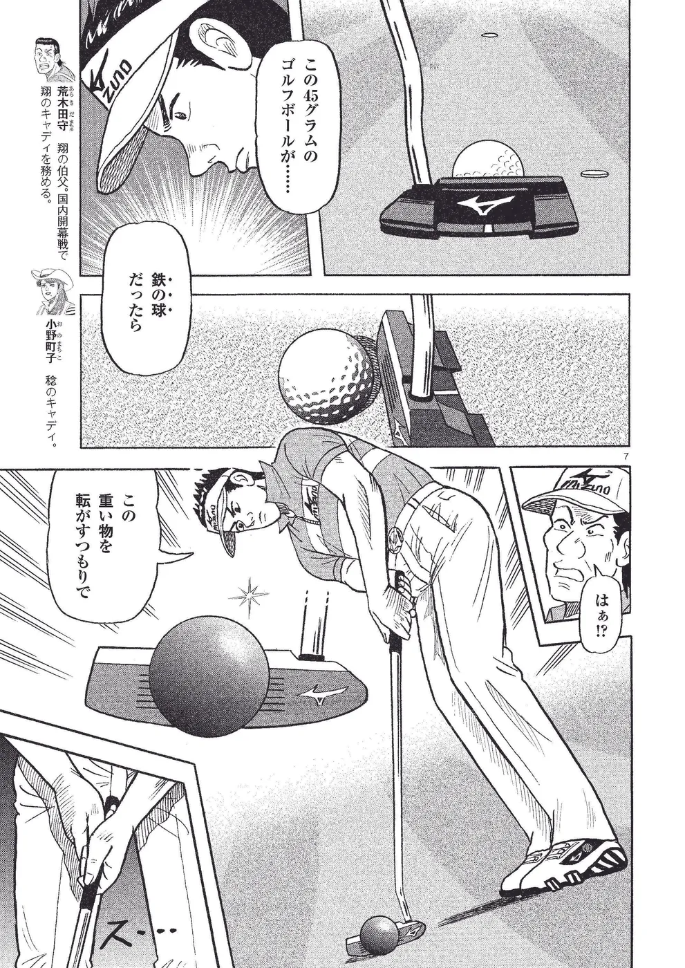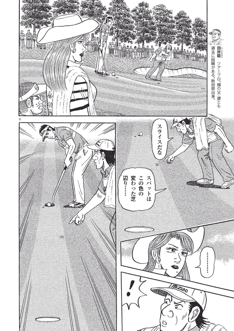 アジアのツアーで力をつけ、主催者推薦で国内開幕戦「東関ホームエイトカップ」に出場した坂本翔。翔はスコアを伸ばし最終日最終組を回ることに。最終日バックナインで翔は、田所稔のキャディ・町子の的確なライン読みを逆手に取り、グリーンを狙うショットで稔のライン上の内側につける作戦を発動するが……