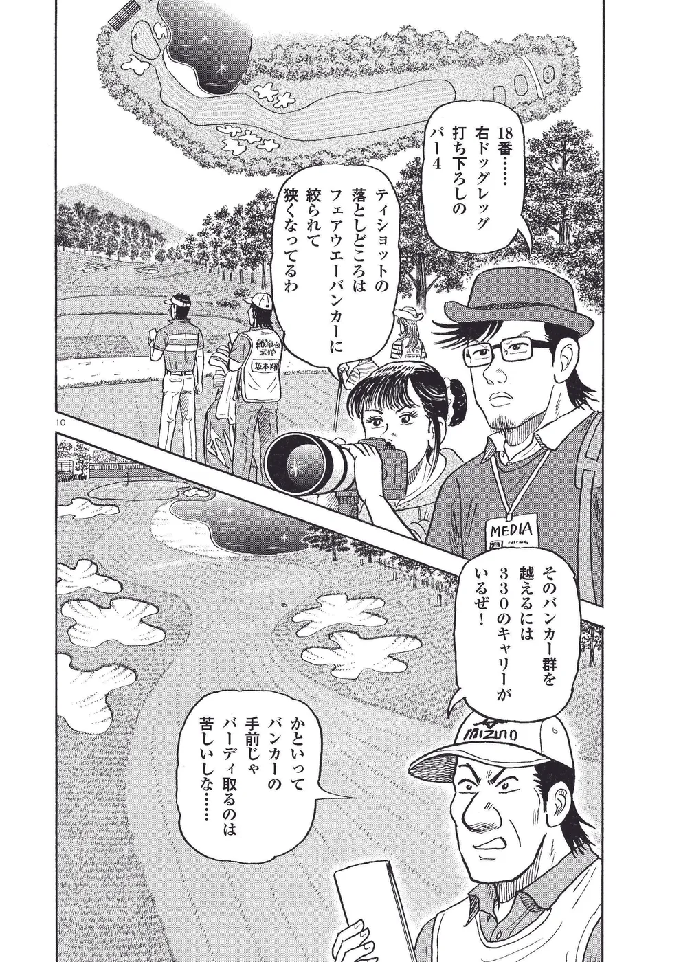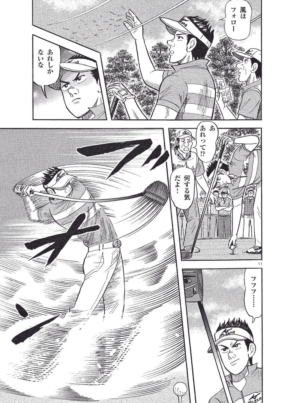 国内開幕戦「東関ホームエイトカップ」。最終日最終組の坂本翔は16番でバーディを奪い、12アンダーでトップの田所稔に追いつくことに成功。しかし謎のルーキー・梶研吾が14アンダーでフィニッシュしているのを知る翔。田所が崩れる中、17番ホールのグリーン周りからイーグルトライをする翔だが……