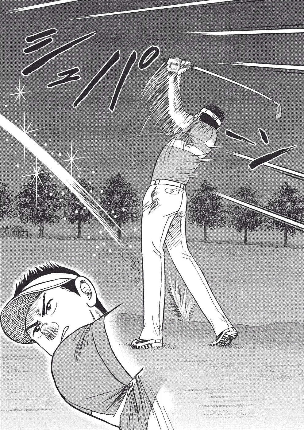 国内開幕戦「東関ホームエイトカップ」。最終日最終組の坂本翔は、クラブハウスリーダーの梶研吾を追う展開に。同組の田所稔が優勝争いから脱落する中、17番のバーディで翔は梶と1打差に迫る。最終18 番、ティショットで飛距離を稼ごうとスーパーマン振りをする翔だが、排水溝で跳ねボールはとんでもないライに……