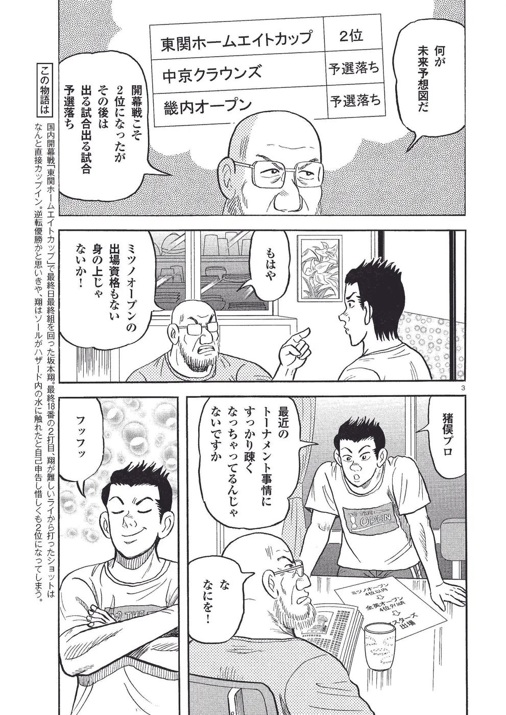 国内開幕戦「東関ホームエイトカップ」で最終日最終組を回った坂本翔。最終18番の2打目、翔が難しいライから打ったショットは なんと直接カップイン。逆転優勝かと思いきや、翔はソールがハザード内の水に触れたと自己申告し惜しくも2位になってしまう。