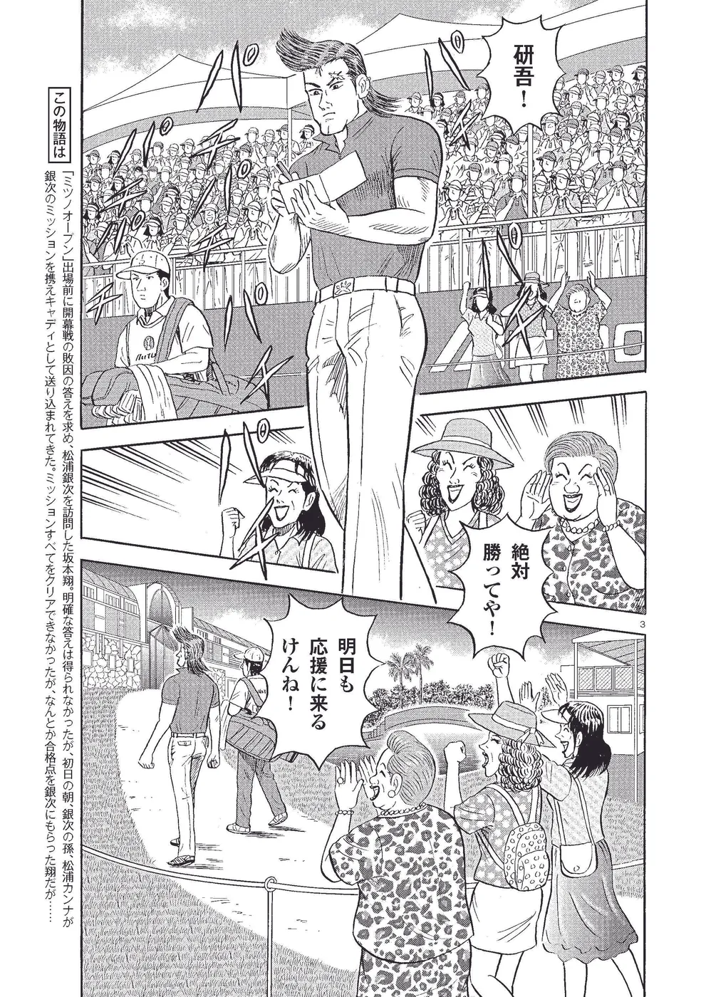 「ミツノオープン」出場前に開幕戦の敗因の答えを求め、松浦銀次を訪問した坂本翔。明確な答えは得られなかったが、初日の朝、銀次の孫、松浦カンナが銀次のミッションを携えキャディとして送り込まれてきた。ミッションすべてをクリアできなかったが、なんとか合格点を銀次にもらった翔だが……