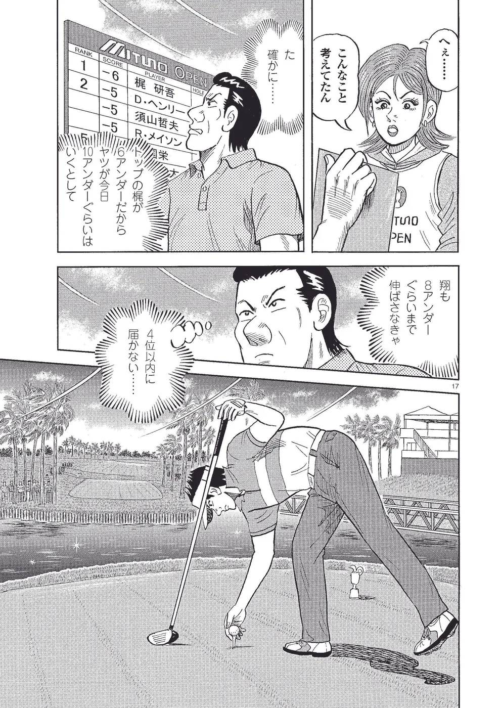 「ミツノオープン」出場前に開幕戦の敗因の答えを求め、松浦銀次を訪問した坂本翔。明確な答えは得られなかったが、初日の朝、銀次の孫、松浦カンナが銀次のミッションを携えキャディとして送り込まれてきた。そのミッションを達成することはできなかったが、銀次に合格点をもらい初日を終えた翔だが……