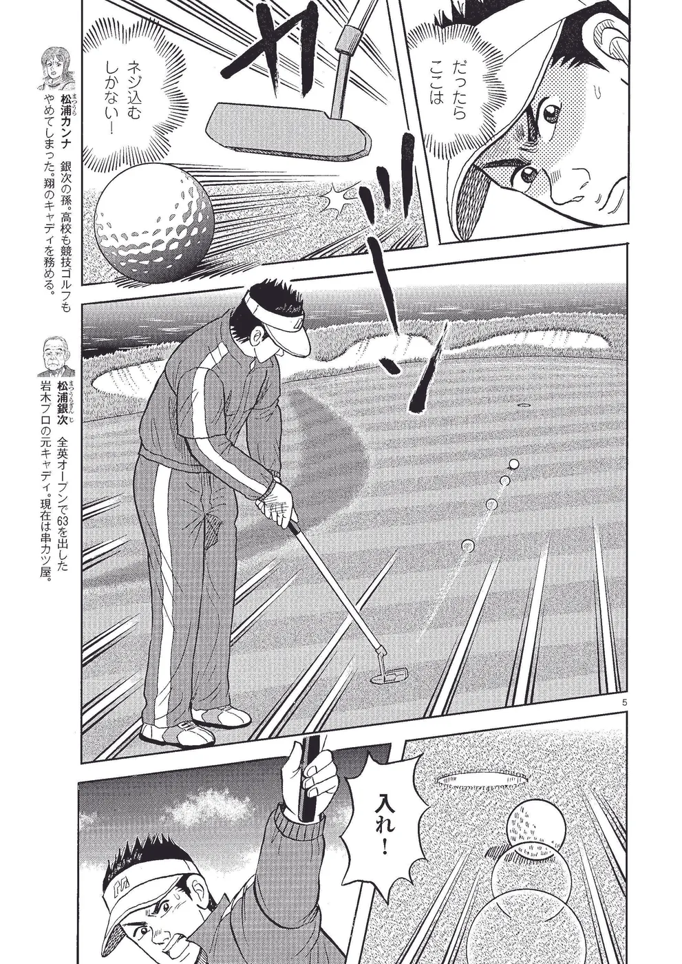 「ミツノオープン」初日、伝説のキャディ・松浦銀次からミッションを携えた孫娘をキャディとして送り込まれた翔。ミッションはすべて達成できなかったが、合格点をもらう。2日目は「グリーンへはすべてセンター狙い」「スコアはトータル8アンダー」「1打ごとにレインウエアの着脱」と無理なミッションに翔は……