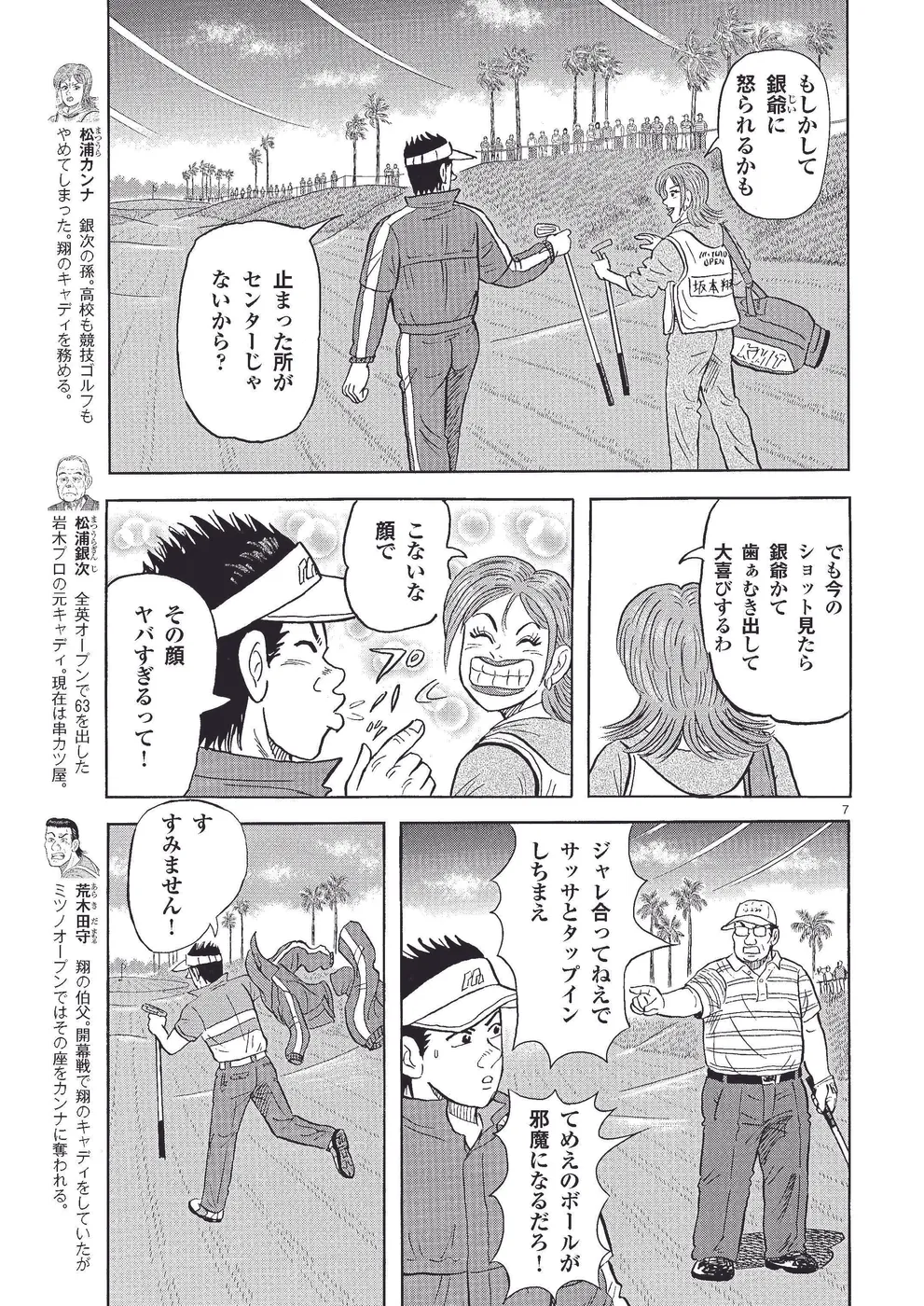 「ミツノオープン」初日、伝説のキャディ・松浦銀次から、ミッションを携えた孫娘をキャディとして送り込まれた翔。ミッションはすべて達成できなかったが、合格点をもらう。2日目は「グリーンへはすべてセンター狙い」「スコアはトータル8アンダー」「1打ごとにレインウエアの着脱」と無理なミッションに翔は……