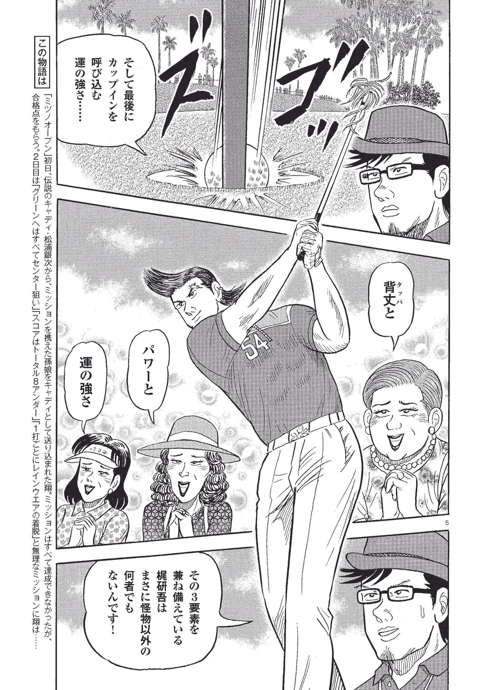 「ミツノオープン」初日、伝説のキャディ・松浦銀次から、ミッションを携えた孫娘をキャディとして送り込まれた翔。ミッションはすべて達成できなかったが、合格点をもらう。2日目は「グリーンへはすべてセンター狙い」「スコアはトータル8アンダー」「1打ごとにレインウエアの着脱」と無理なミッションに翔は……