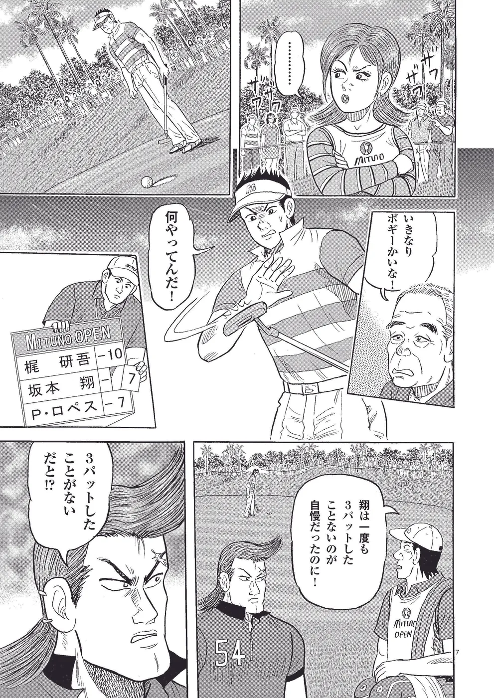 「ミツノオープン」で、伝説のキャディ・松浦銀次からミッションを携えた孫娘、カンナをキャディとして送り込まれた翔。上位で予選通過を果たす。2日目、伯父の守が首位の梶のキャディになり、敵に回ることに。1番グリーン上で大ショートの翔。前日のパター故障による修理の影響か、それとも……