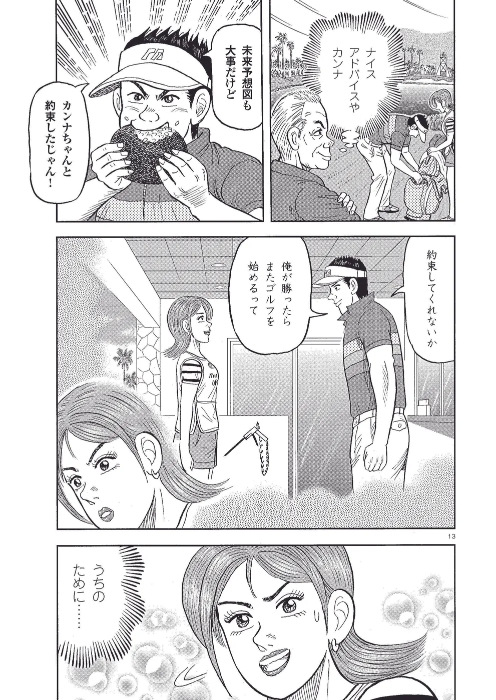 「ミツノオープン」で、伝説のキャディ・松浦銀次からミッションを携えたカンナをキャディとして送り込まれた翔。3日目、伯父の守が梶のキャディになり、敵に回ることに。首位の梶との差が5打の最終日、9番ホールで池ポチャからスーパーパーセーブした翔は反撃ののろしを上げる。優勝の行方はいかに!?