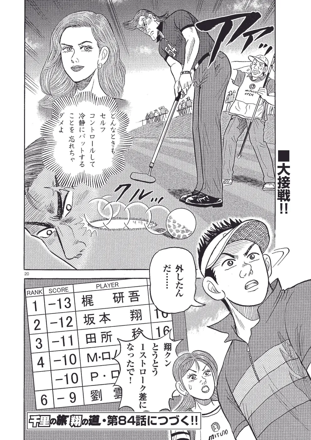 「ミツノオープン」で、伝説のキャディ・松浦銀次からミッションを携えたカンナをキャディとして送り込まれた翔。3日目、伯父の守が梶のキャディになり、敵に回ることに。首位の梶と一騎打ちの最終日終盤、3打差に迫った翔は、16番パー3でベタピンにつけて、事実上、梶との差を2打にするが……