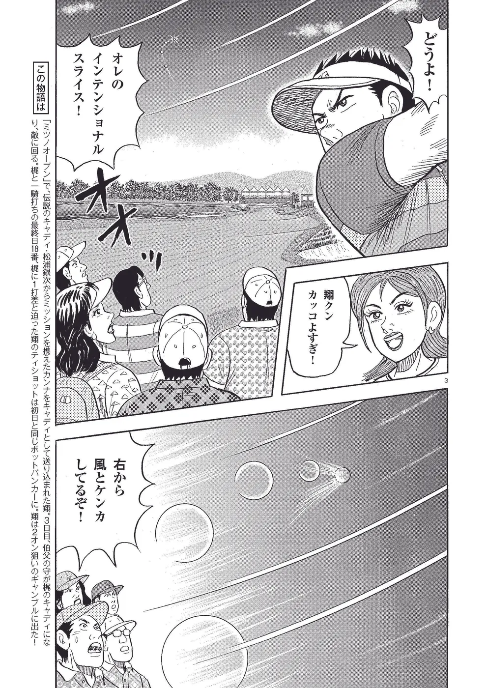 「ミツノオープン」で、伝説のキャディ・松浦銀次からミッションを携えたカンナをキャディとして送り込まれた翔。3日目、伯父の守が梶のキャディになり、敵に回る。梶と一騎打ちの最終日18番、梶に1打差と迫った翔のティショットは初日と同じポットバンカーに。翔は2オン狙いのギャンブルに出た!