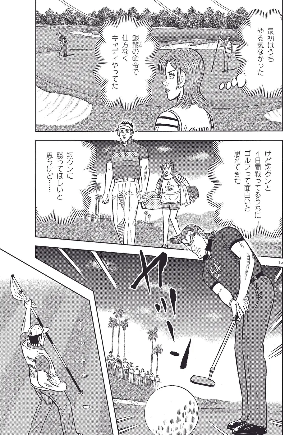 「ミツノオープン」で、伝説のキャディ・松浦銀次からミッションを携えたカンナをキャディとして送り込まれた翔。3日目、伯父の守が梶のキャディになり、敵に回る。首位の梶と1打差の最終日18番、翔はミラクルショットで2オン、梶は3オン。翔は難しいラインのイーグルパットに挑む。初優勝なるか。