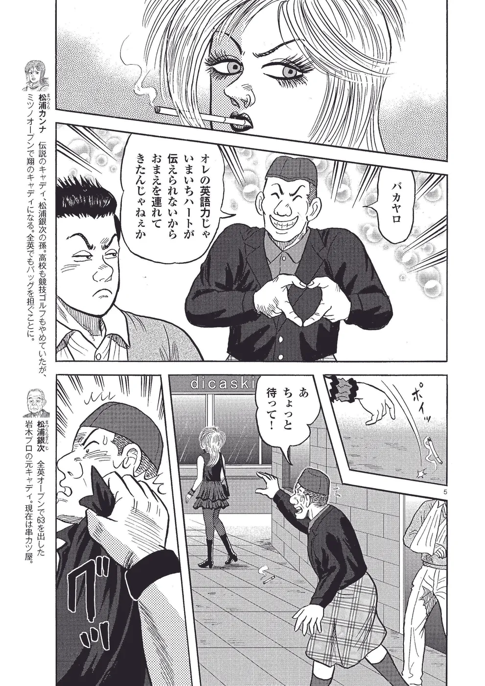 全英オープンの切符を手にした翔。トゥルーン初の練習ラウンドで、ジュニアのときに翔が勝ったことがあるという、USPGAツアーの若手のホープ、ケビン・ゴーマンに翔は圧倒的な実力の差を見せつけられてしまう。焦った翔は、むちゃな左打ちで右手を負傷。練習ラウンドを途中で切り上げることに……