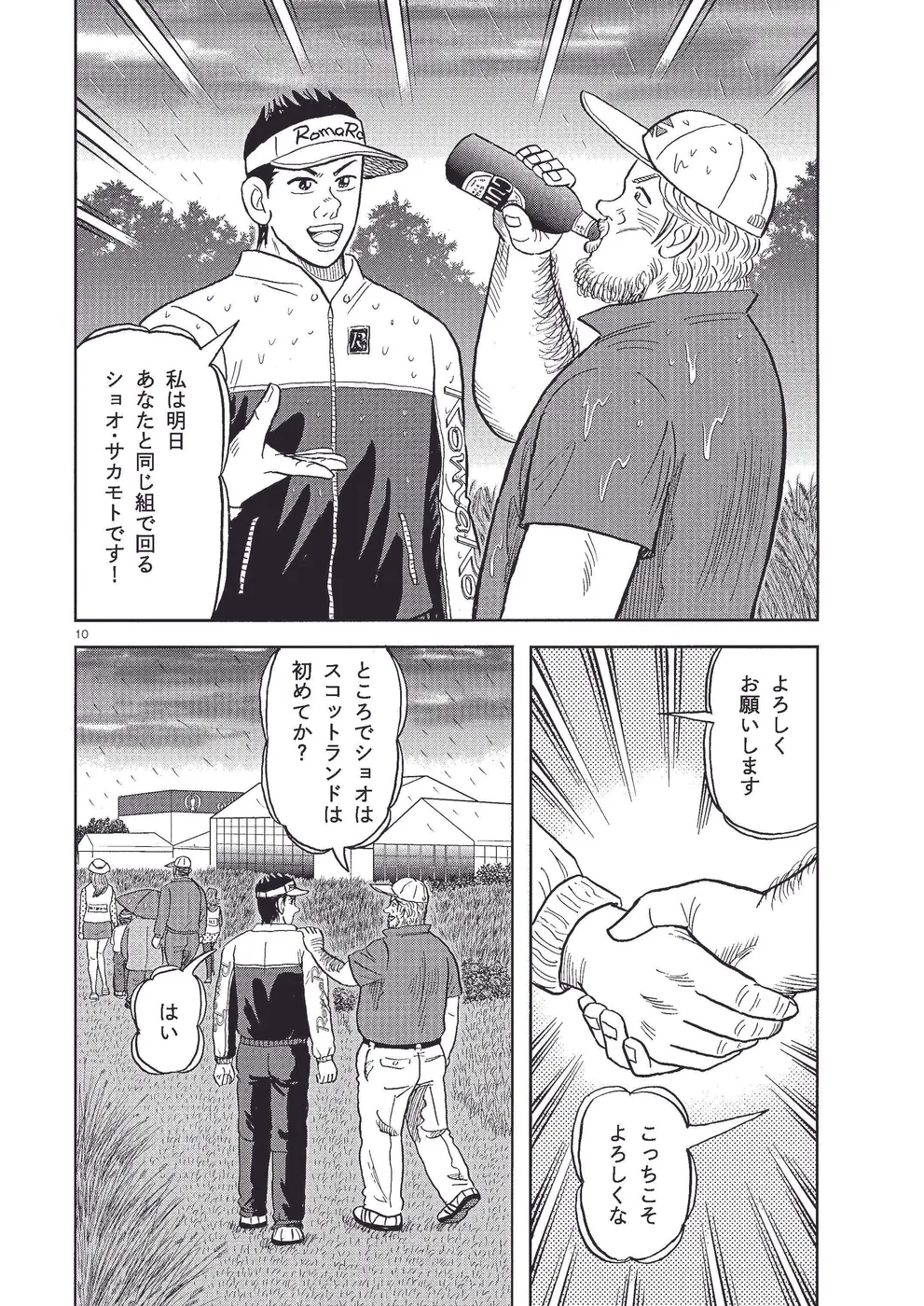 全英オープンの切符を手にした翔。トゥルーン初の練習ラウンドで、ジュニアのときに翔が勝ったことがあるという、アメリカ人の若手のホープ、ケビン・ゴーマンに翔はライバル視される。練習ラウンド2日目も初日同様コースに打ちのめされた翔だが、わずかな光も見えた。ホールアウト後に妙な事件が…… !?
