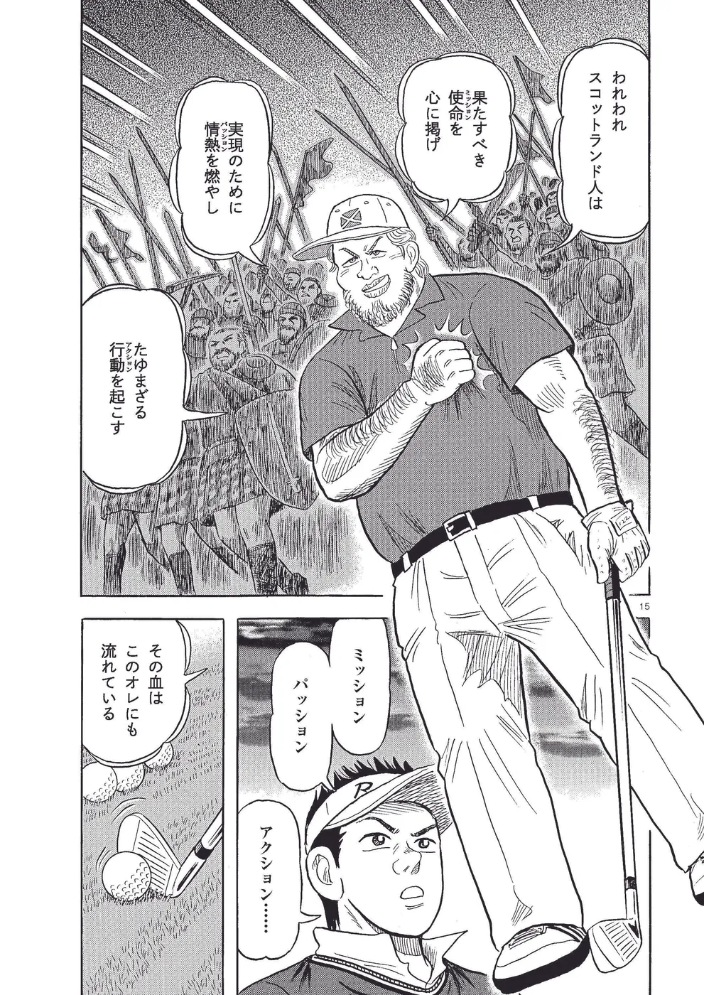 全英オープンの切符を手にした翔。トゥルーン初の練習ラウンドで、ジュニアのときに翔が勝ったことがあるという、アメリカ人の若手のホープ、ケビン・ゴーマンに翔はライバル視される。練習ラウンド2日目も初日同様コースに打ちのめされた翔だが、わずかな光も見えた。ホールアウト後に妙な事件が…… !?