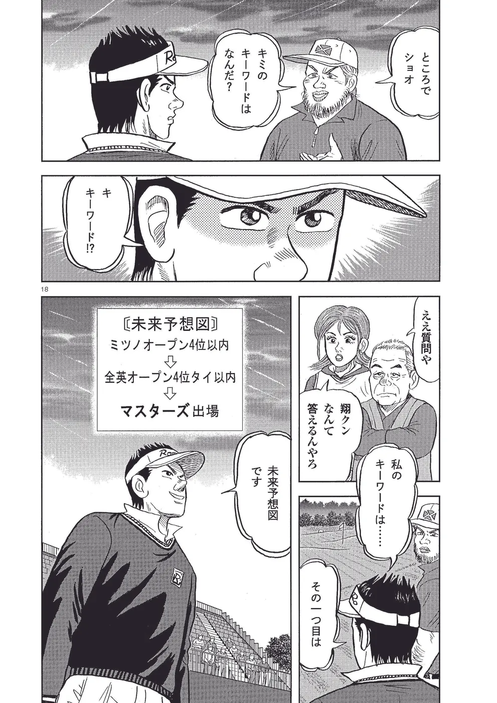 全英オープンの切符を手にした翔。トゥルーン初の練習ラウンドで、ジュニアのときに翔が勝ったことがあるという、アメリカ人の若手のホープ、ケビン・ゴーマンに翔はライバル視される。練習ラウンド2日目も初日同様コースに打ちのめされた翔だが、わずかな光も見えた。ホールアウト後に妙な事件が…… !?